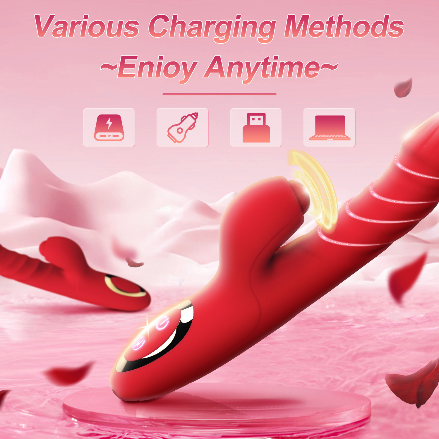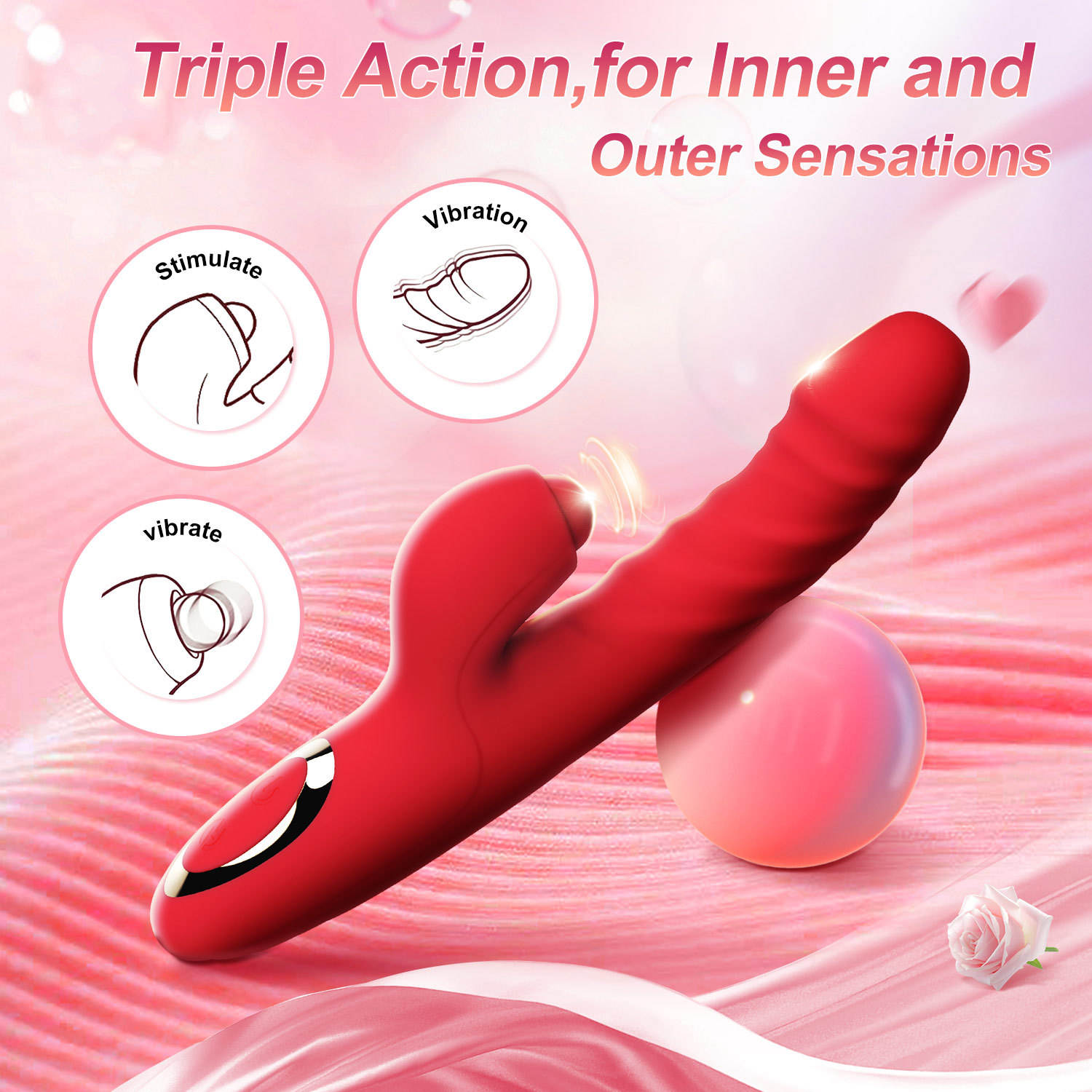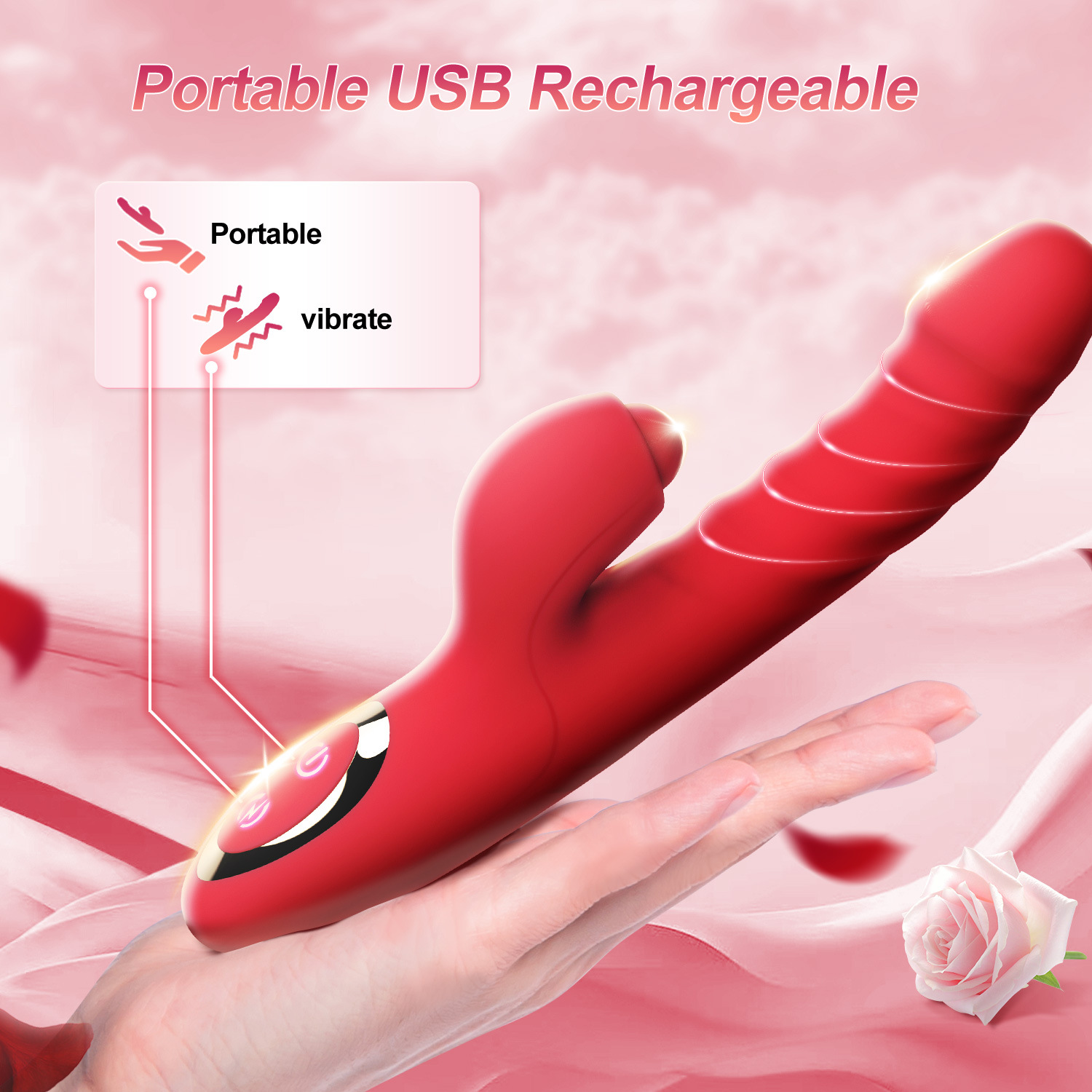 2 in 1 Women Sex Dildo Stretching Vibration Rabbit Vibrator G Spot Stimulation Female Tapping Sucking Rabbit Vibrator
