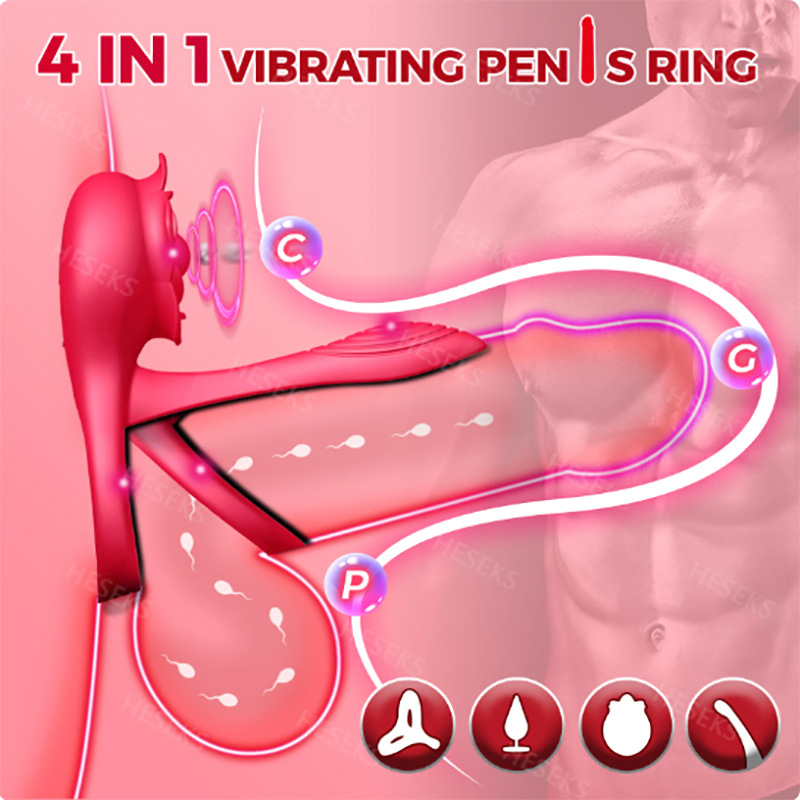4 in 1 Orgasm Clitoral Stimulation Remote Control Vibrator Silicone Chargeable Cum Locking Masturbation Ring for Couples