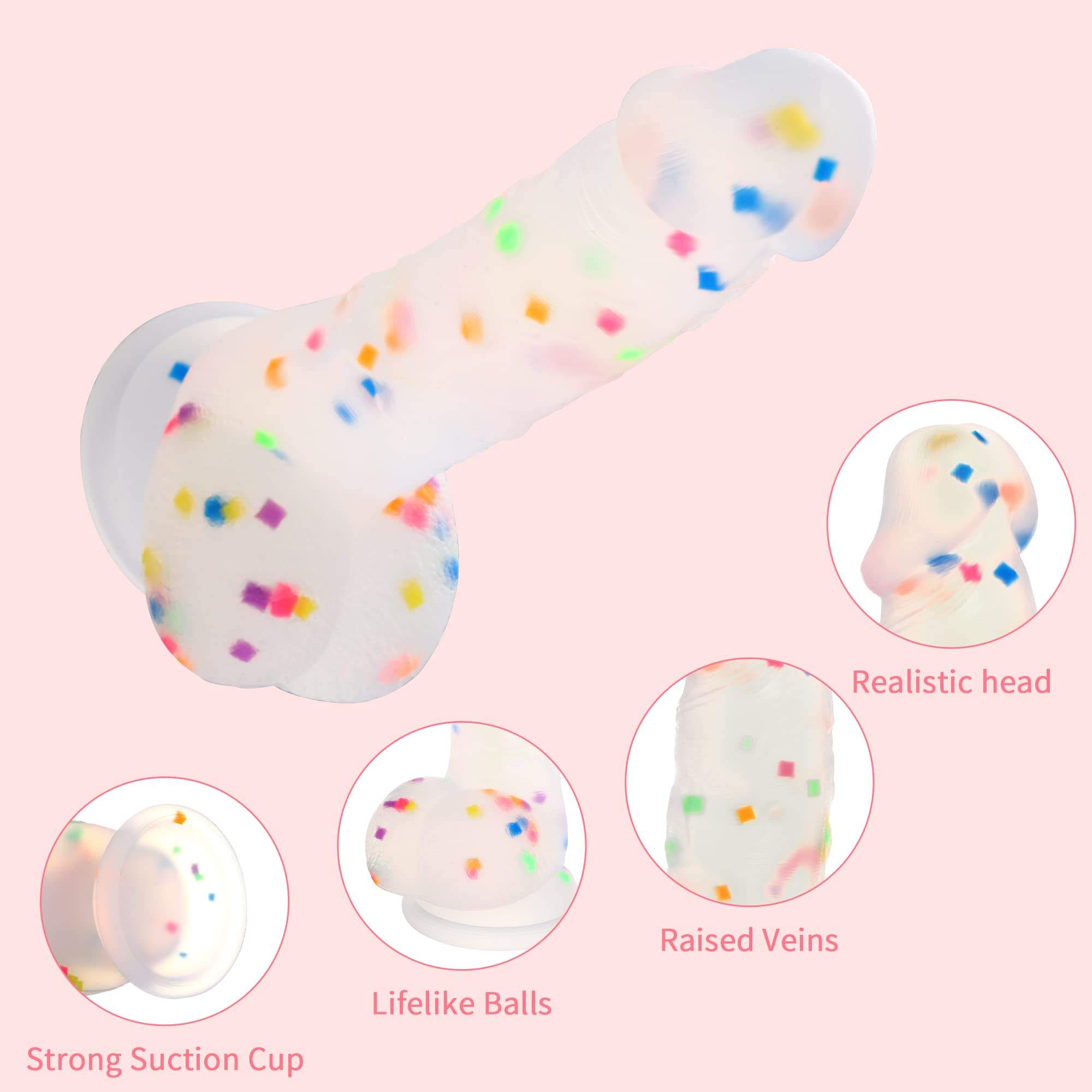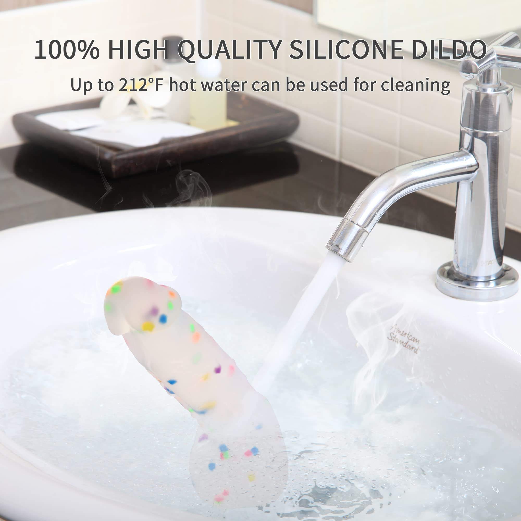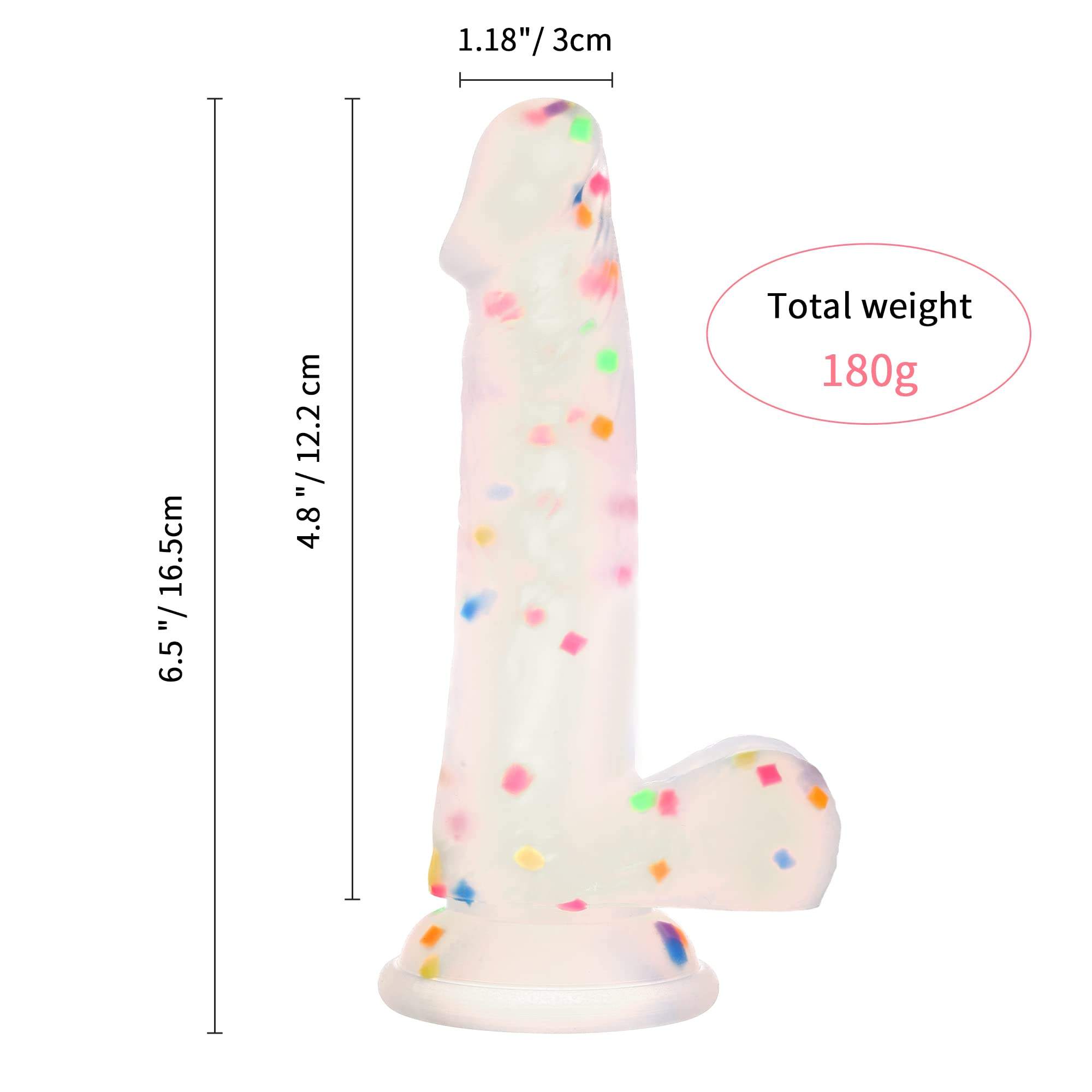 6.5 Inch Clear Silicone Dildo with Flared Suction Cup Base for Hands-Free Play