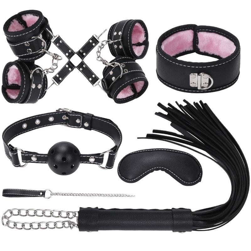 7 Pcs/set Erotic Sexy Bondage Set Handcuffs Clamps Gag Whip Rope Male and Female Adult Sex Toys