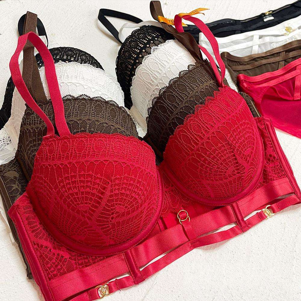 A Best-selling Set of Underwear with Thin Top and Thick Bottom, Small Chest, Cut-out and Sexy Lace, and a Gathering Bra