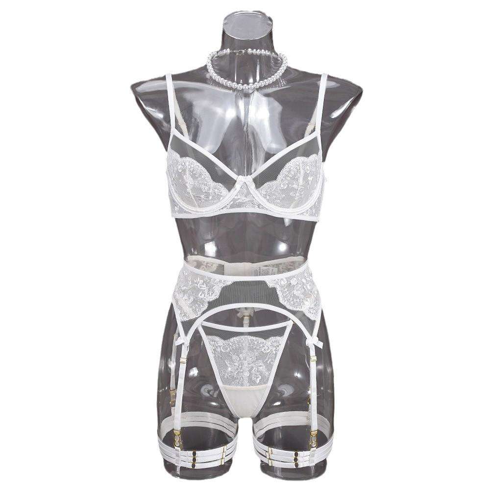 A Four-piece Set of Complex, Sexy and Romantic Lingerie with Floral Lace Mesh Embroidery and Pendant Decoration From Russia