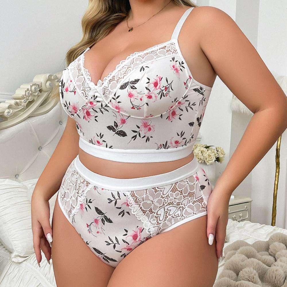 A New and Popular Lingerie Set From Europe and America, Featuring Small Floral Lace and Sexy Low-cut Halter Tops