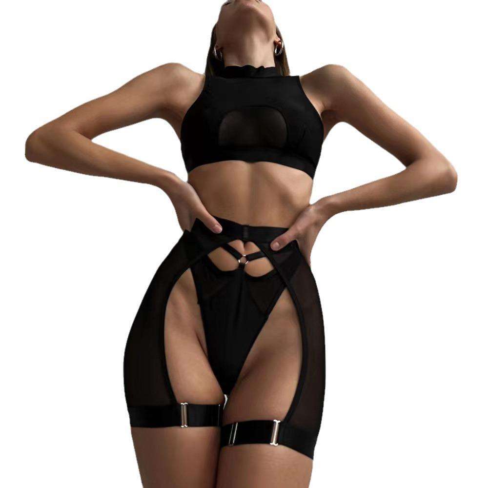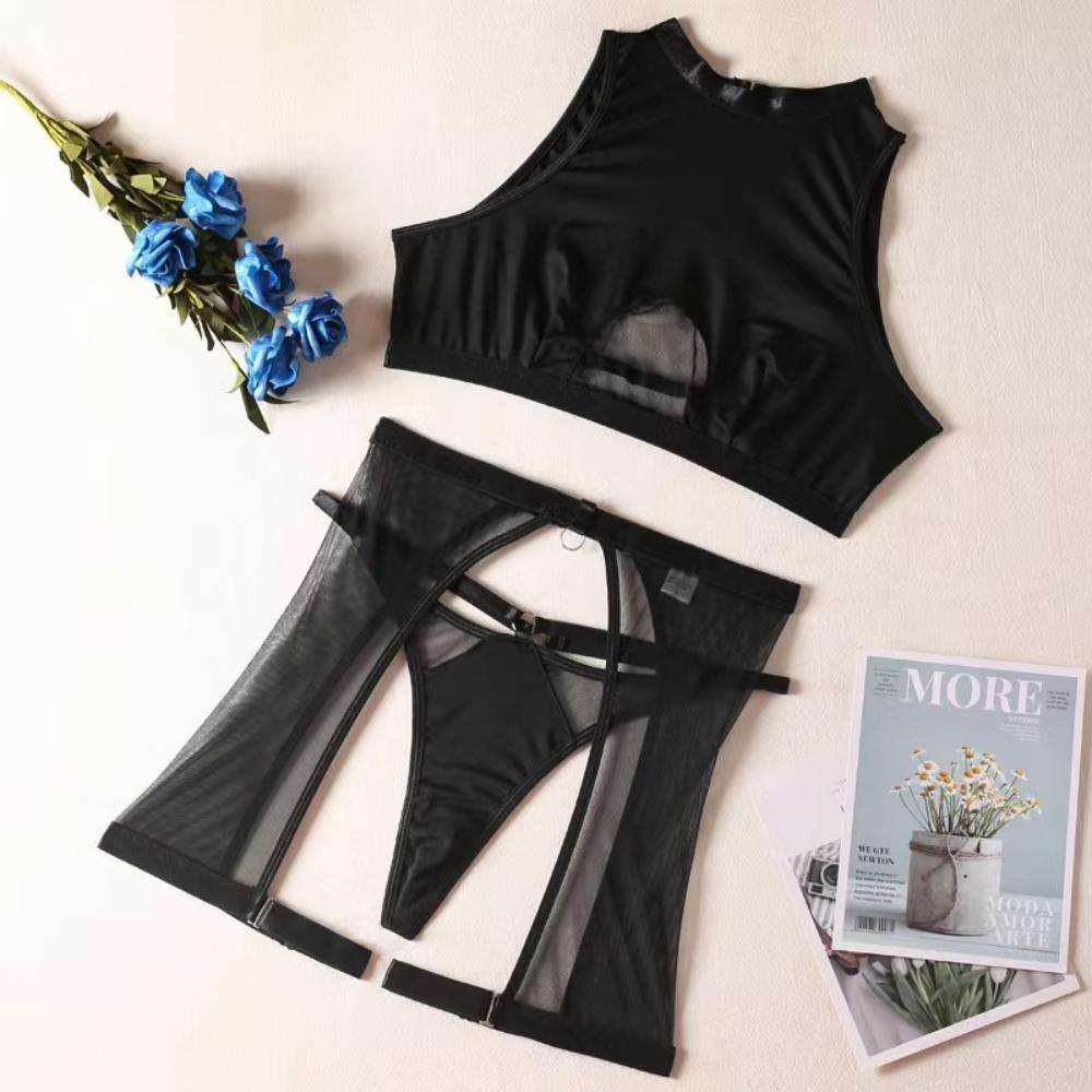 A New Black Undergarment Without Steel Rings, a Fashionable and See-through Sexy Lingerie Set for Women