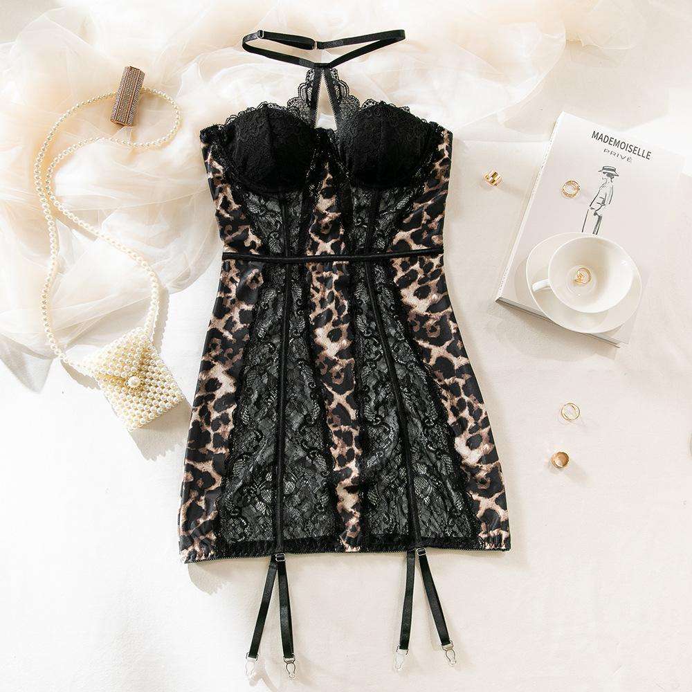 A New European and American Lace Patchwork Print Breathable Hollowed-out Steel Ring Gathering One-piece Dress