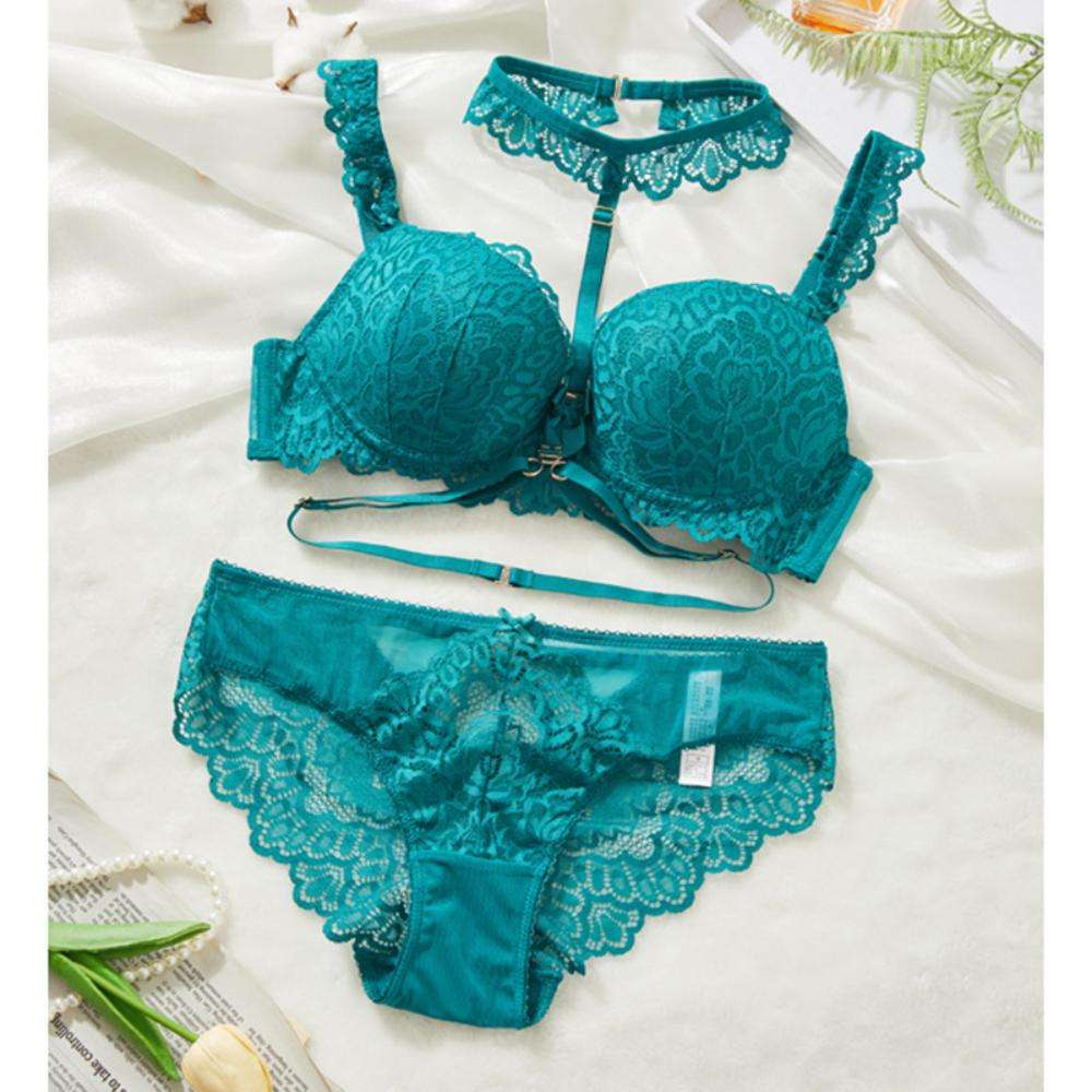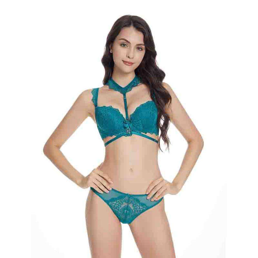 A New European and American Lace Sexy and Fun Lingerie Set, Fashionable with Embroidered Lace, Split Neck-hanging Lingerie