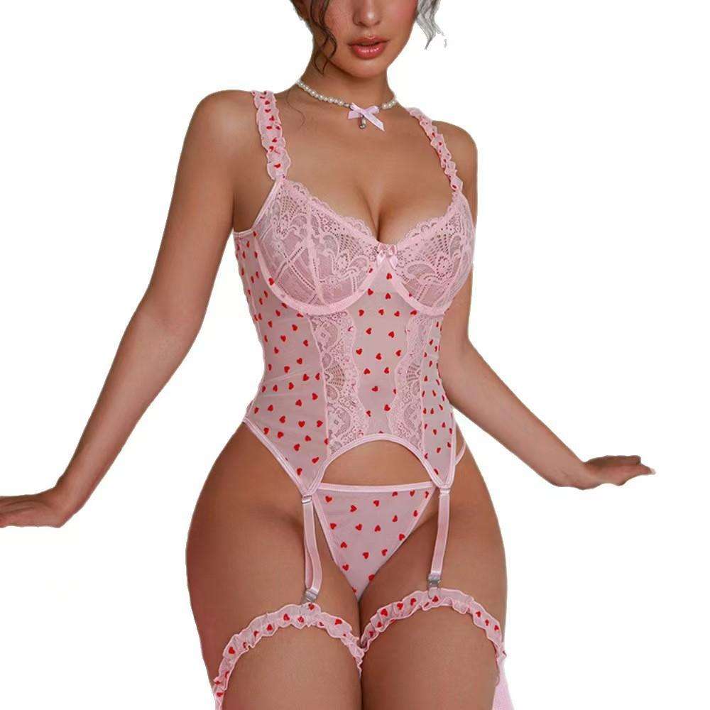 A New Style of European and American Halter Lace Corset One-piece Uniform with Net Stockings and Romantic Underwear Set