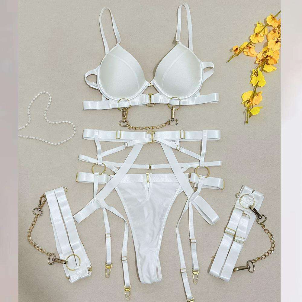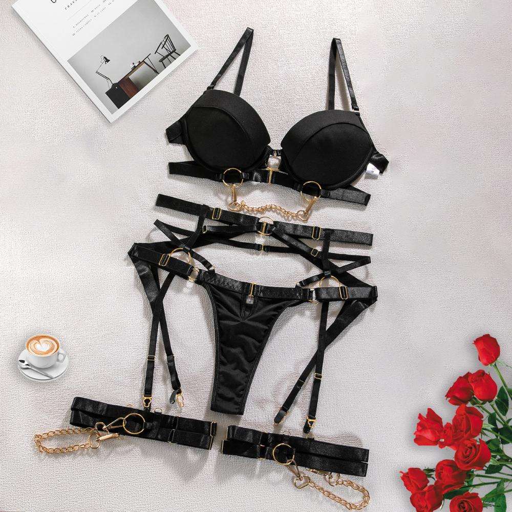 A Popular European and American Sexy and Complex Craftsmanship Front-opening Button Spliced Ankle Ring Lingerie Set