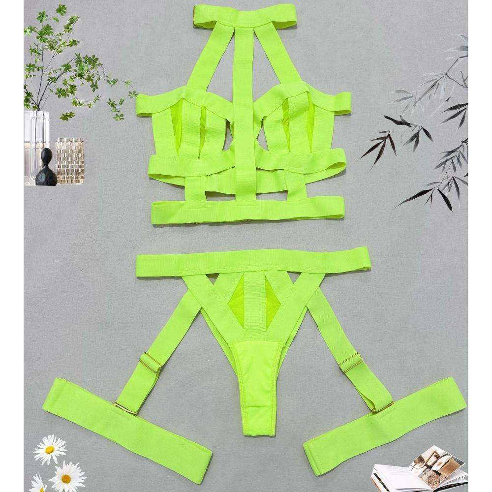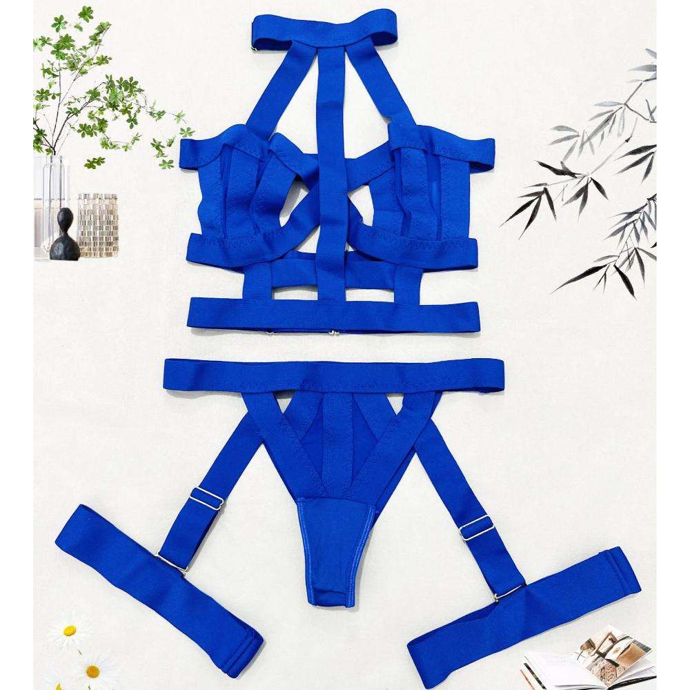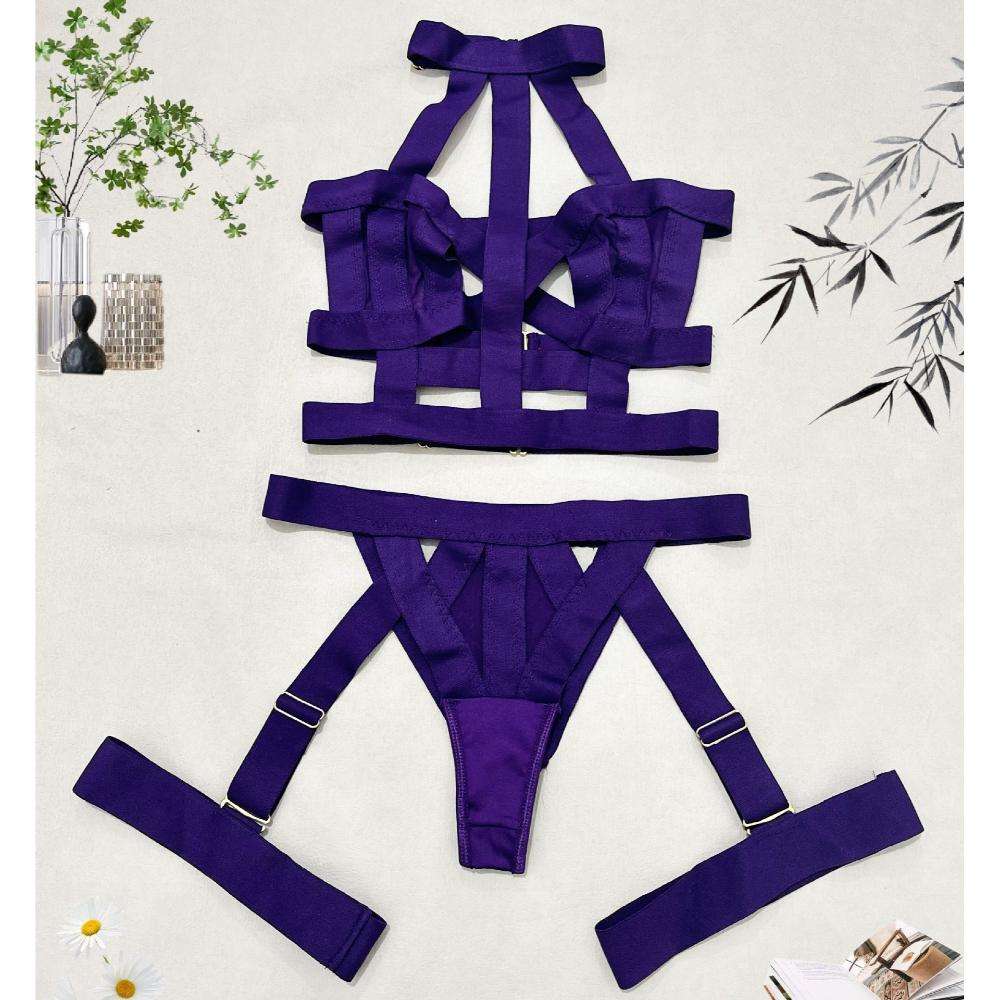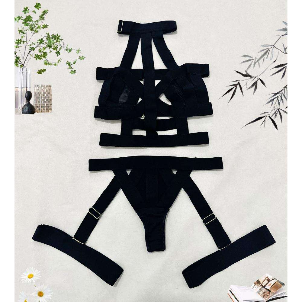 A Popular European and American Underwear Set with Hollowed-out and Tempting Spliced Bandages and Elastic Fabric