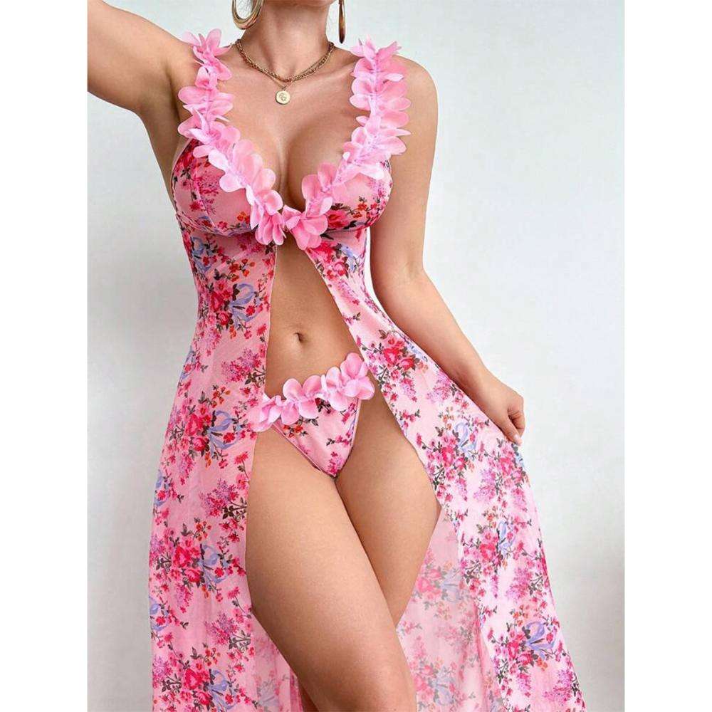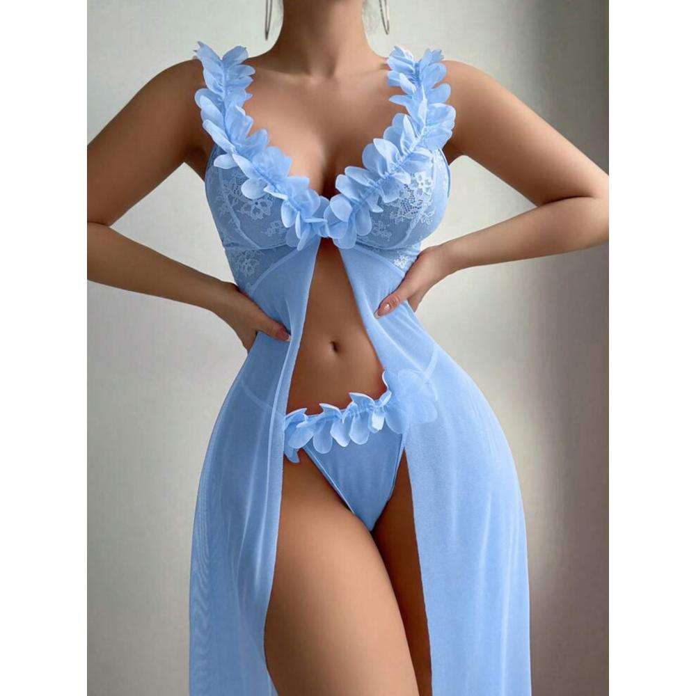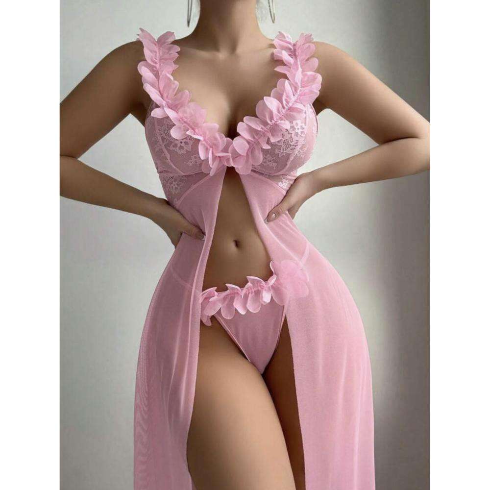 A Popular European and American Women’s Sexy and Seductive Mesh Lace Three-dimensional and Interesting Dress Set
