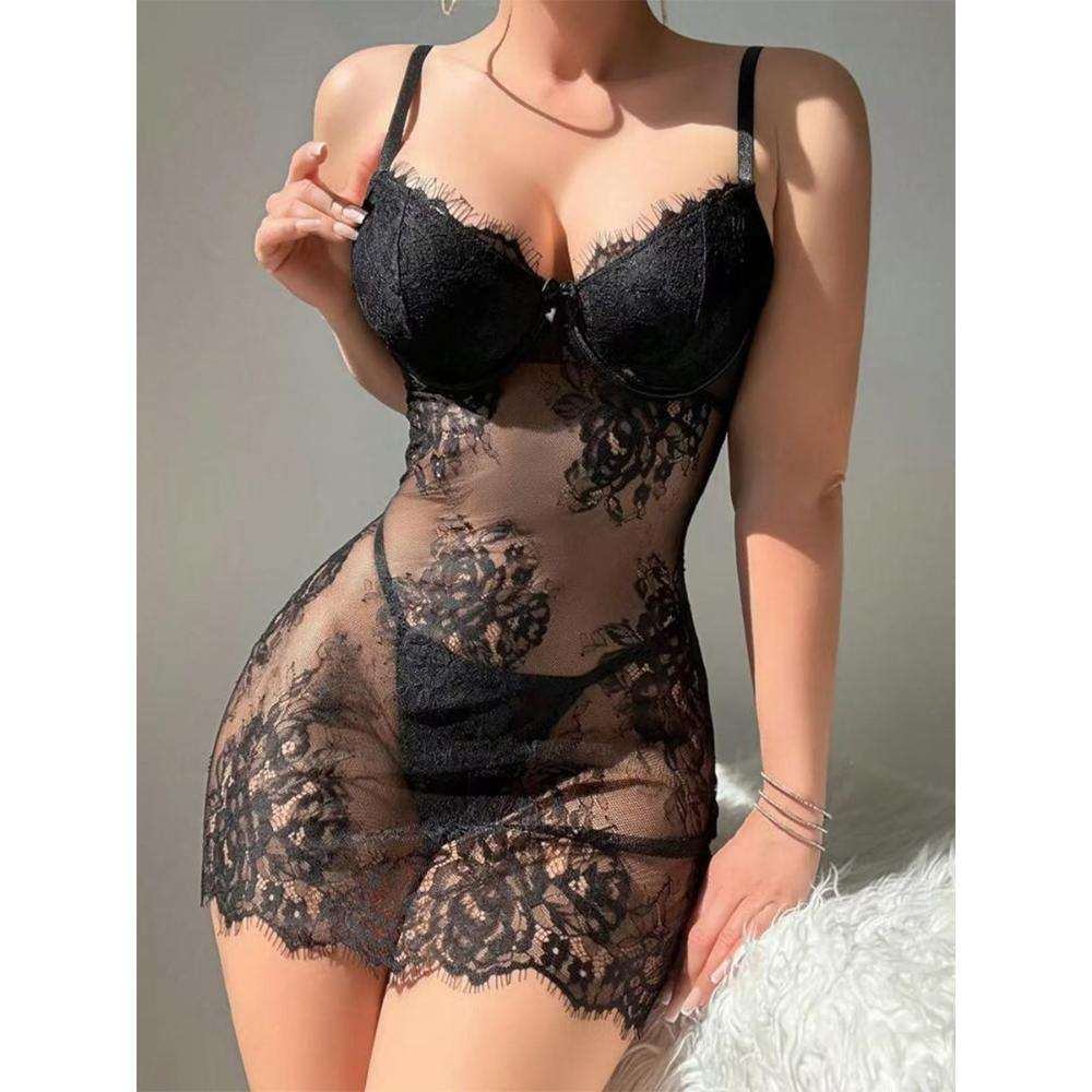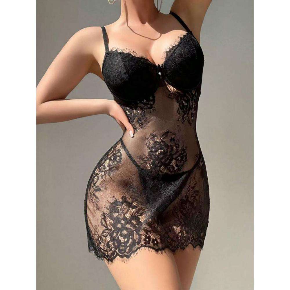 A Popular European and American Women’s Sexy See-through Dress with Lace Back, Cut-out Halter Dress, Thong and Lingerie Set