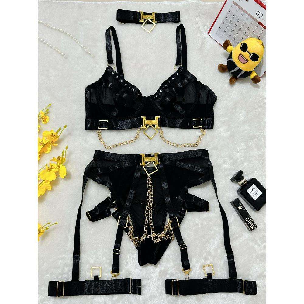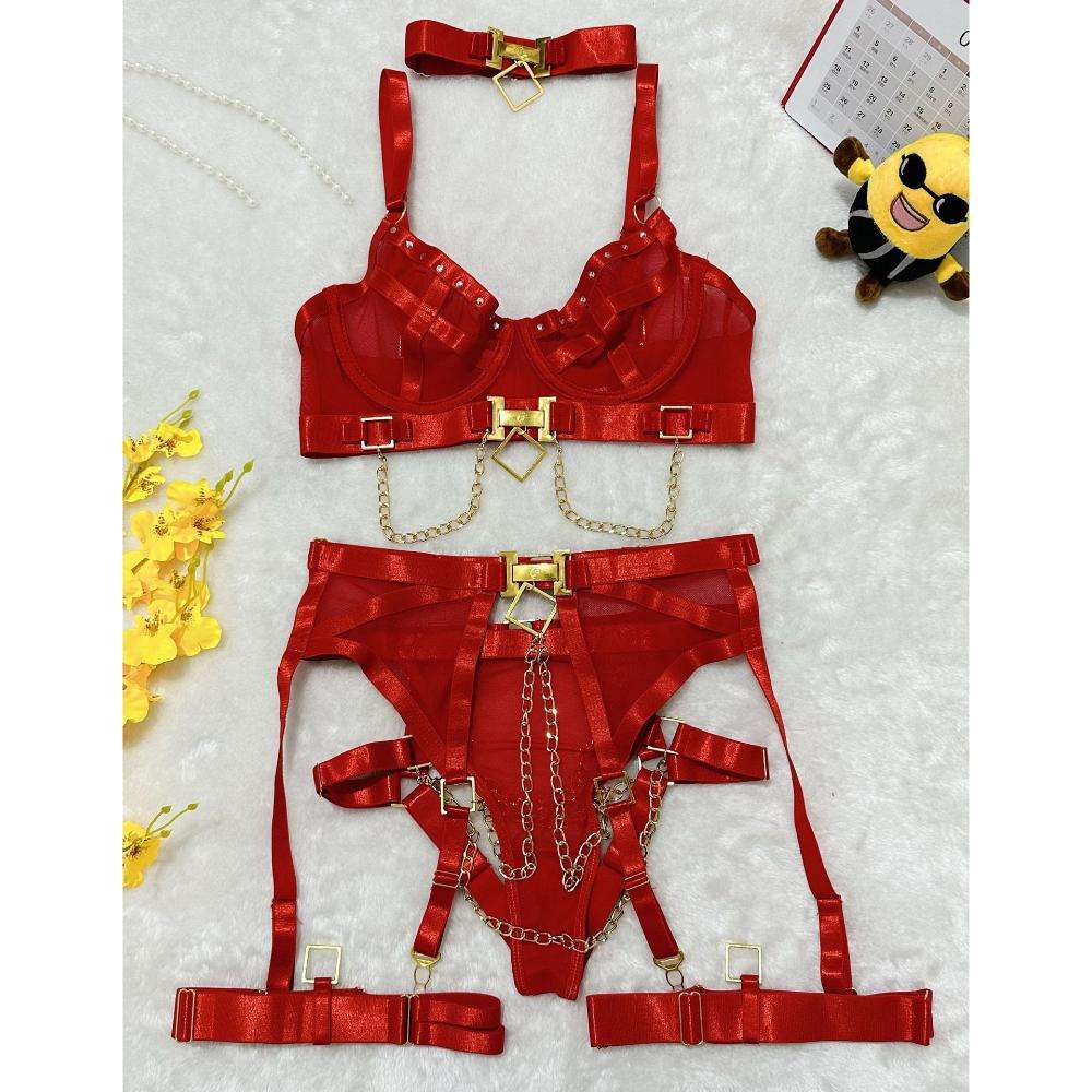 A Popular Sexy and Romantic Lingerie From Europe and America, Featuring See-through Mesh Fabric with Iron Rings and Leg Loops