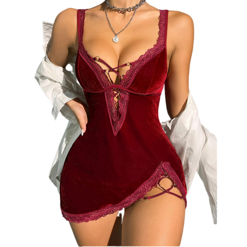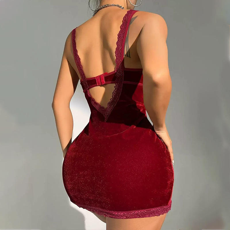 A Popular Sexy and Romantic One-piece Dress From Europe and America, with a Seductive Backless and Deep V-shaped Cutout Lingerie