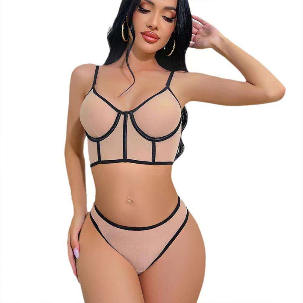 A Sensual Sensual Lingerie Set with Mesh Fabric, See-through and Steel Rims, in a European and American Style