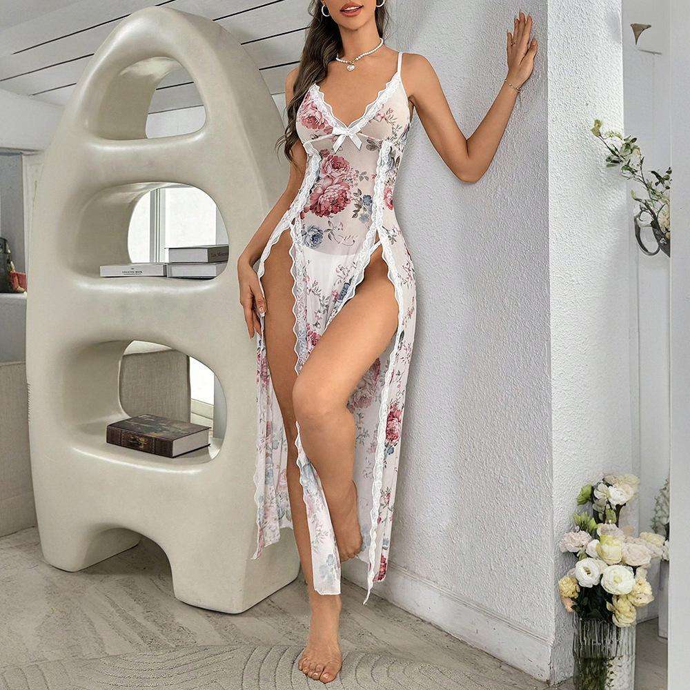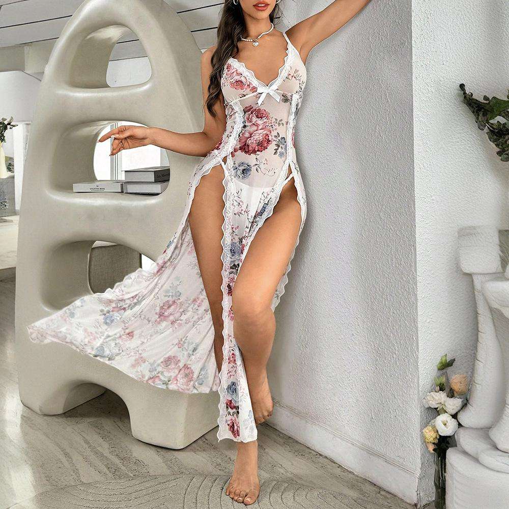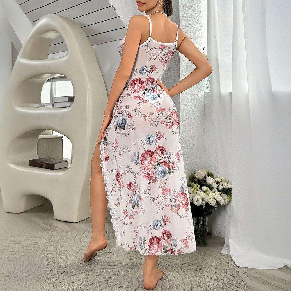 A Sexy and Pure Desire Home Dress From Europe and America, Featuring Chiffon Satin Printed Straps and a Thin Halter Dress