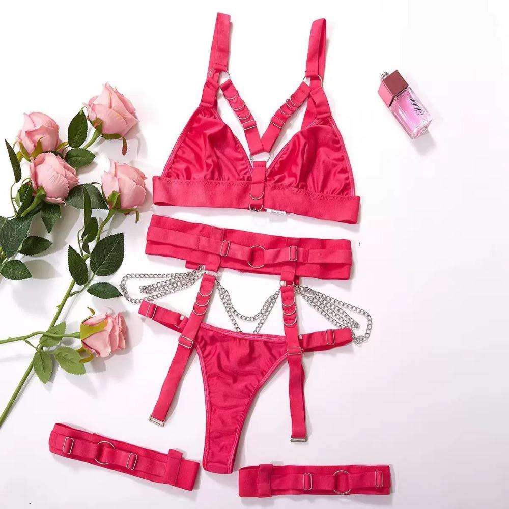 A Sexy and Romantic Lingerie Set Featuring Popular European and American Halter Straps, Steel Rims and Leg Rings