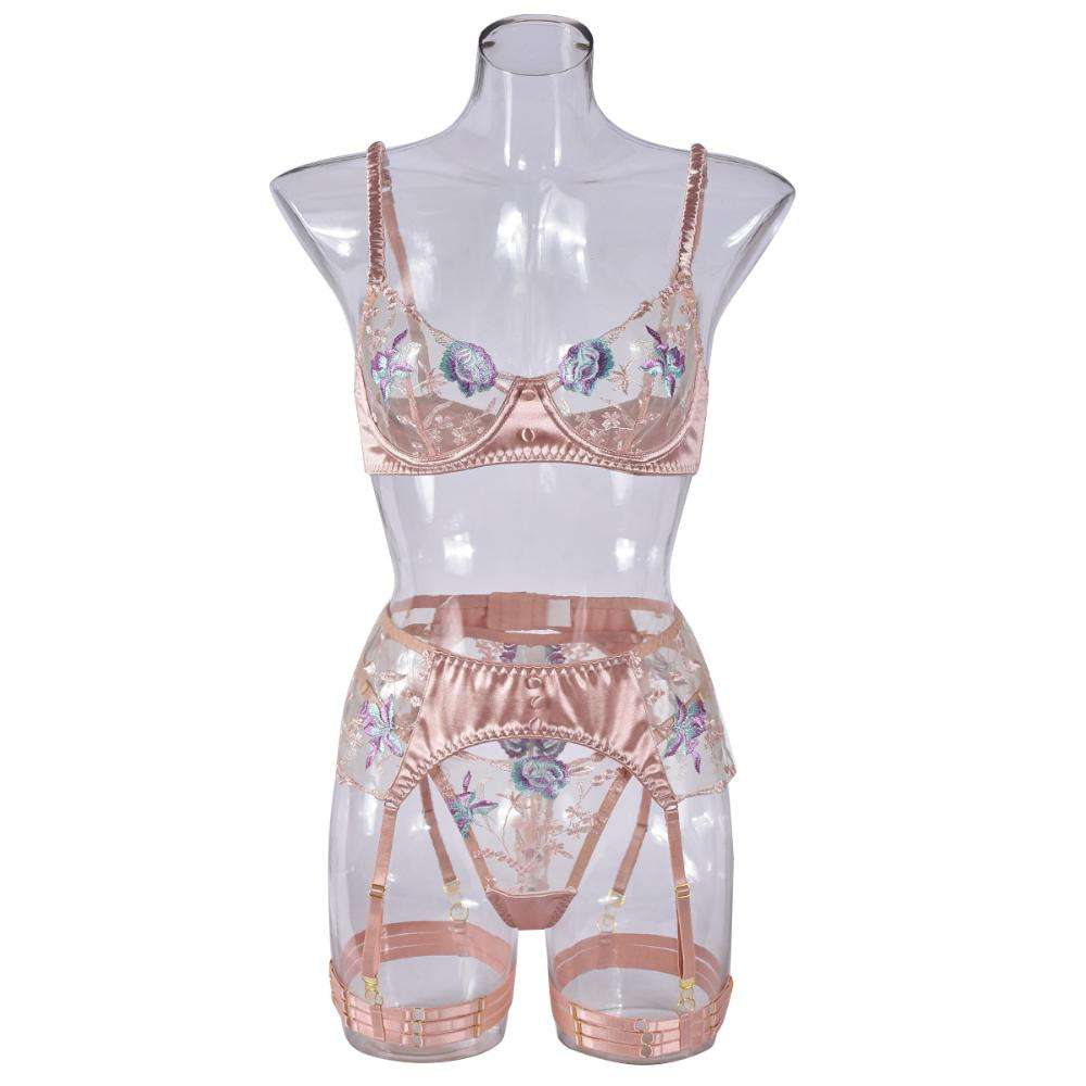 A Sexy and Seductive Four-piece Set of See-through Colored Satin Embroidered Bras From Europe and America