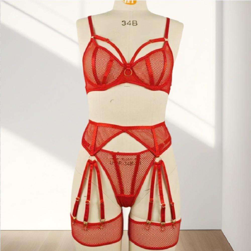 A Sexy See-through Lingerie Set Featuring a Popular European and American Mesh Cutout Bra Thong with Underwire