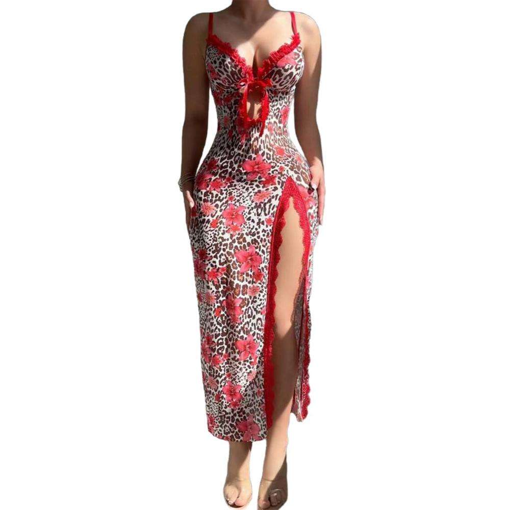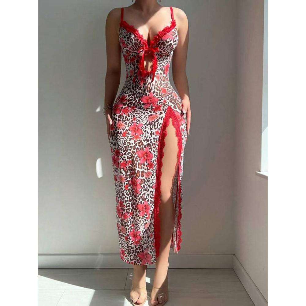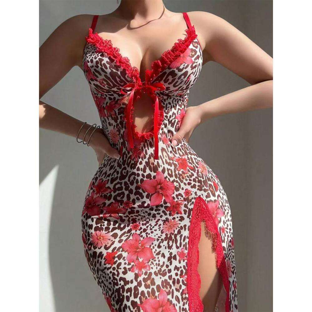 A Sexy Slit Lace Dress Set for Women in Europe and America That Can Open the Front Chest and Is Seductive and Interesting