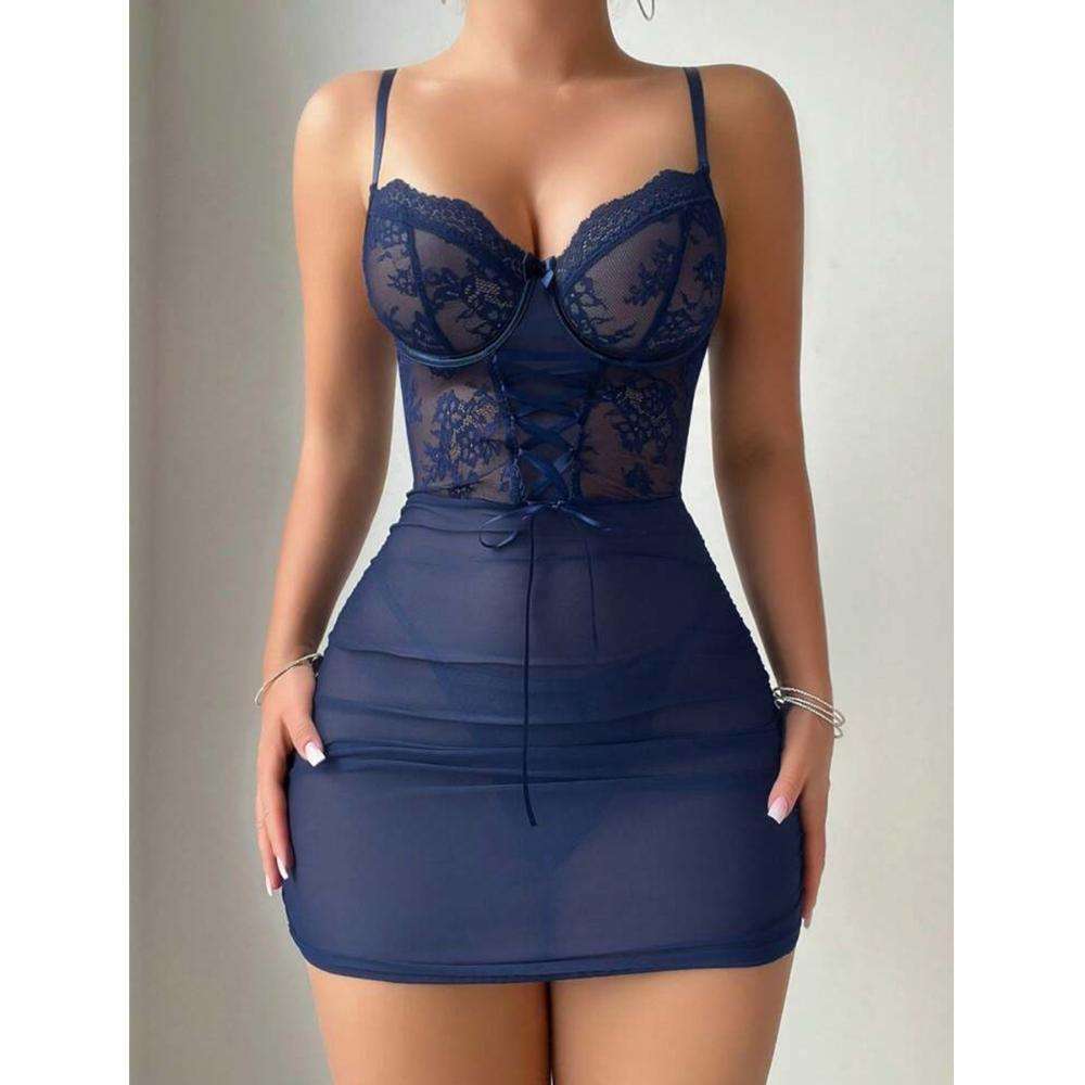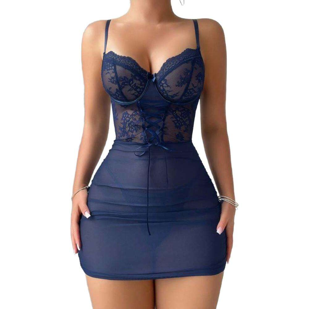 A Two-piece Set of Sexy and Romantic Lingerie, Lace, See-through, Seductive Nightdress and Thong From Europe and America