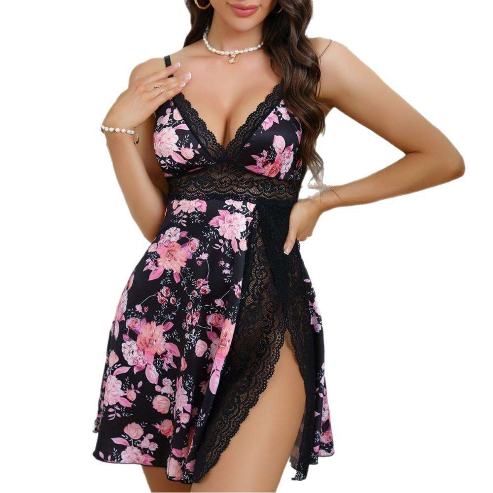 Best-selling Sexy Floral Side-slit See-through Halter Dress, Cross-border Floral Dress, Best-selling Sleeping Dress