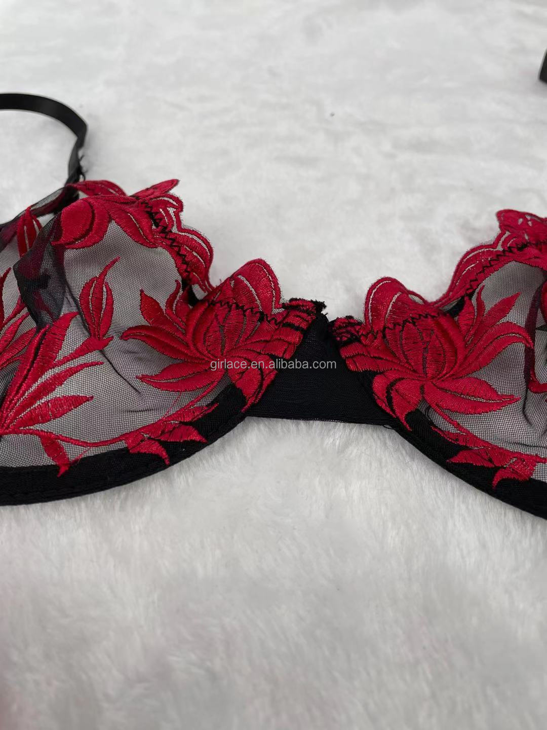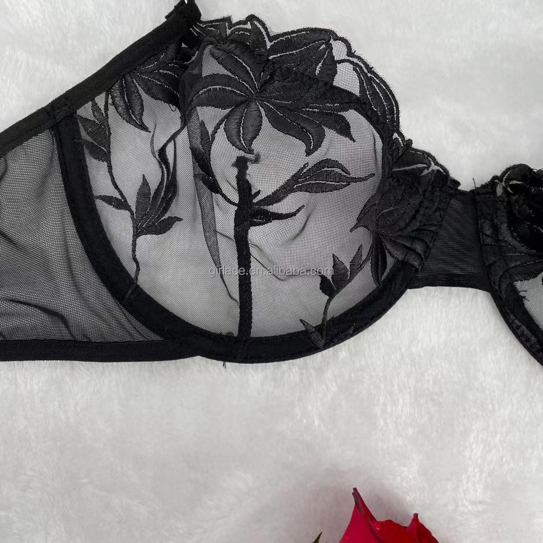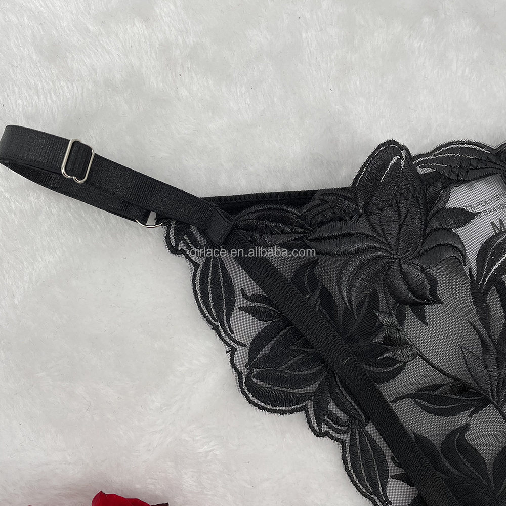 Big Hips Hot Girls Floral Embroidery Women’s Strappy Brief Bra Panty Sets