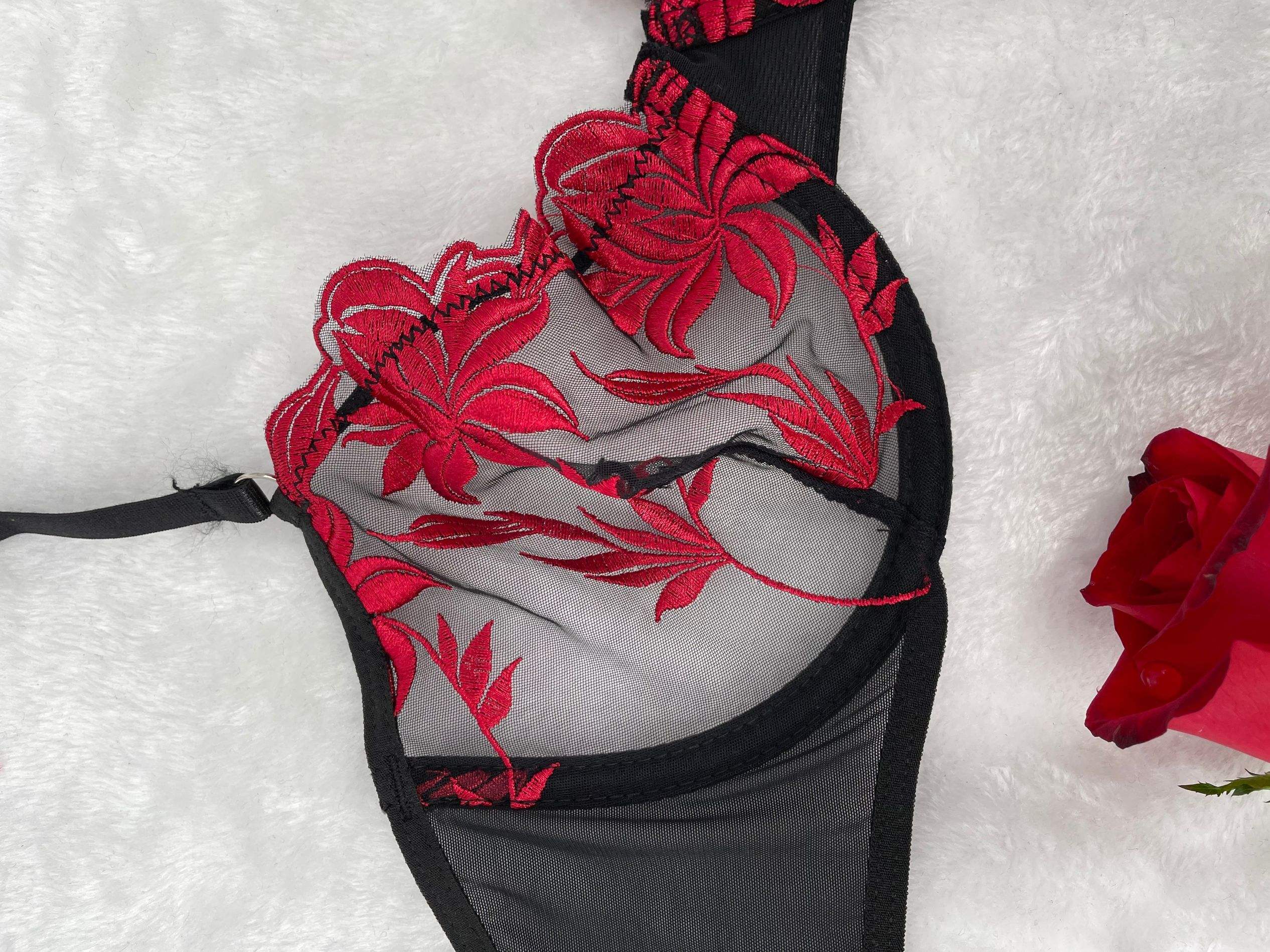Big Hips Hot Girls Floral Embroidery Women’s Strappy Brief Bra Panty Sets