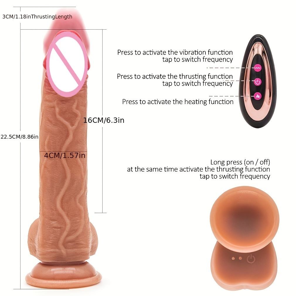 Big Warming Realistic Dildo Vibrating Machine Remote Control Heating Stretch Swing Thrusting Dildo Vibrator Sex Toys for Women