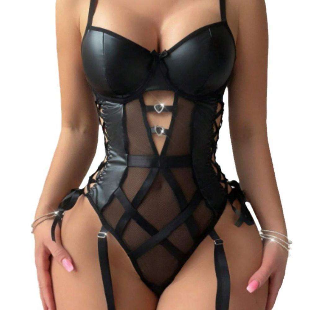 Black Sexy and Romantic One-piece Dress for Women, Mesh Fabric Spliced Steel Ring See-through Romantic Underwear