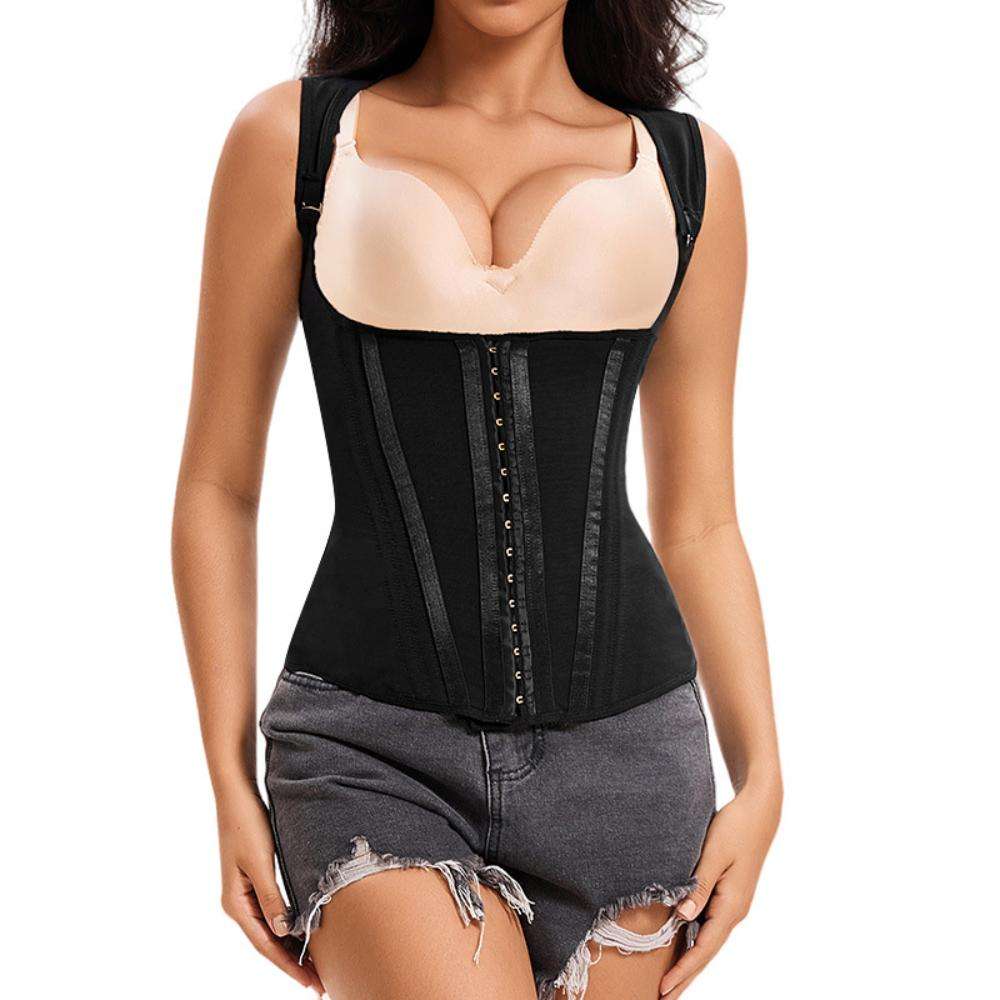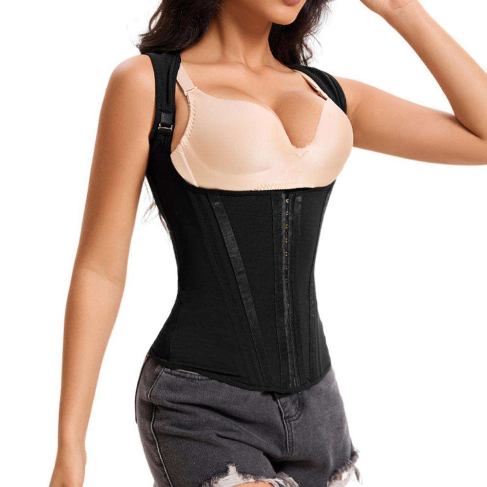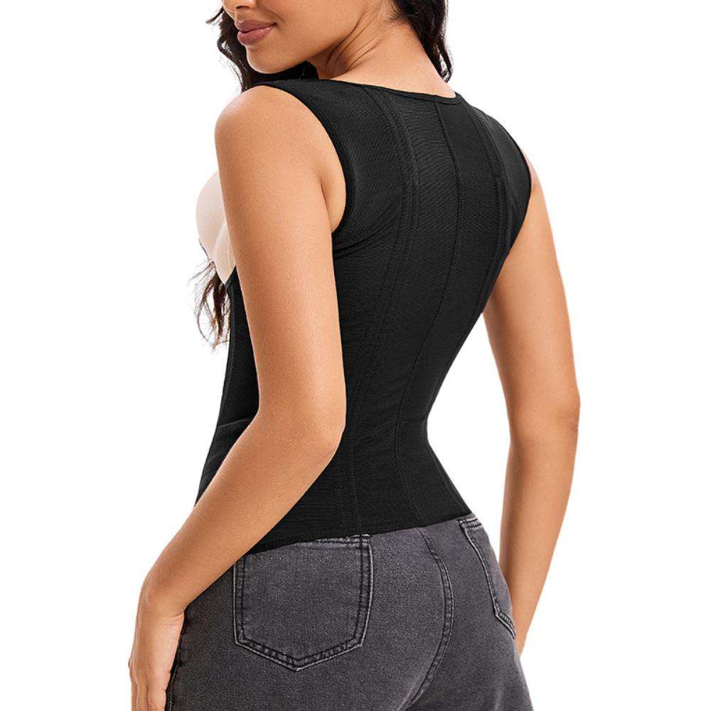 Button-down Breathable Mesh Tight Corset Vest, Waist-cinching, Belt-fitting Shoulder Strap Shaping Top