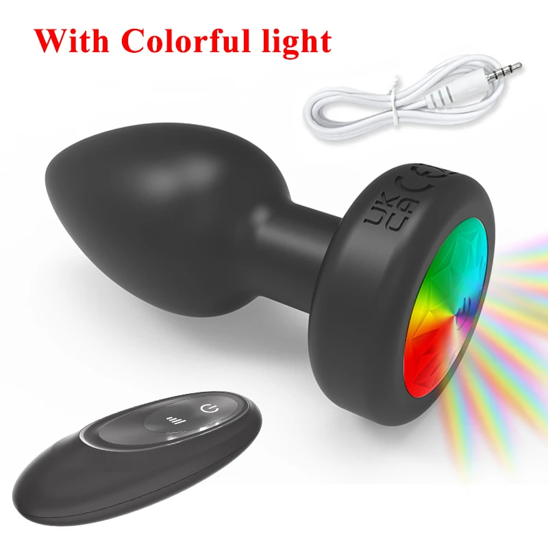Colorful Light Silicone Rose Anal Plug Butt Massager Prostate Vibrator Sex Toy for Men Gay Wireless Remote Control Anal Plug