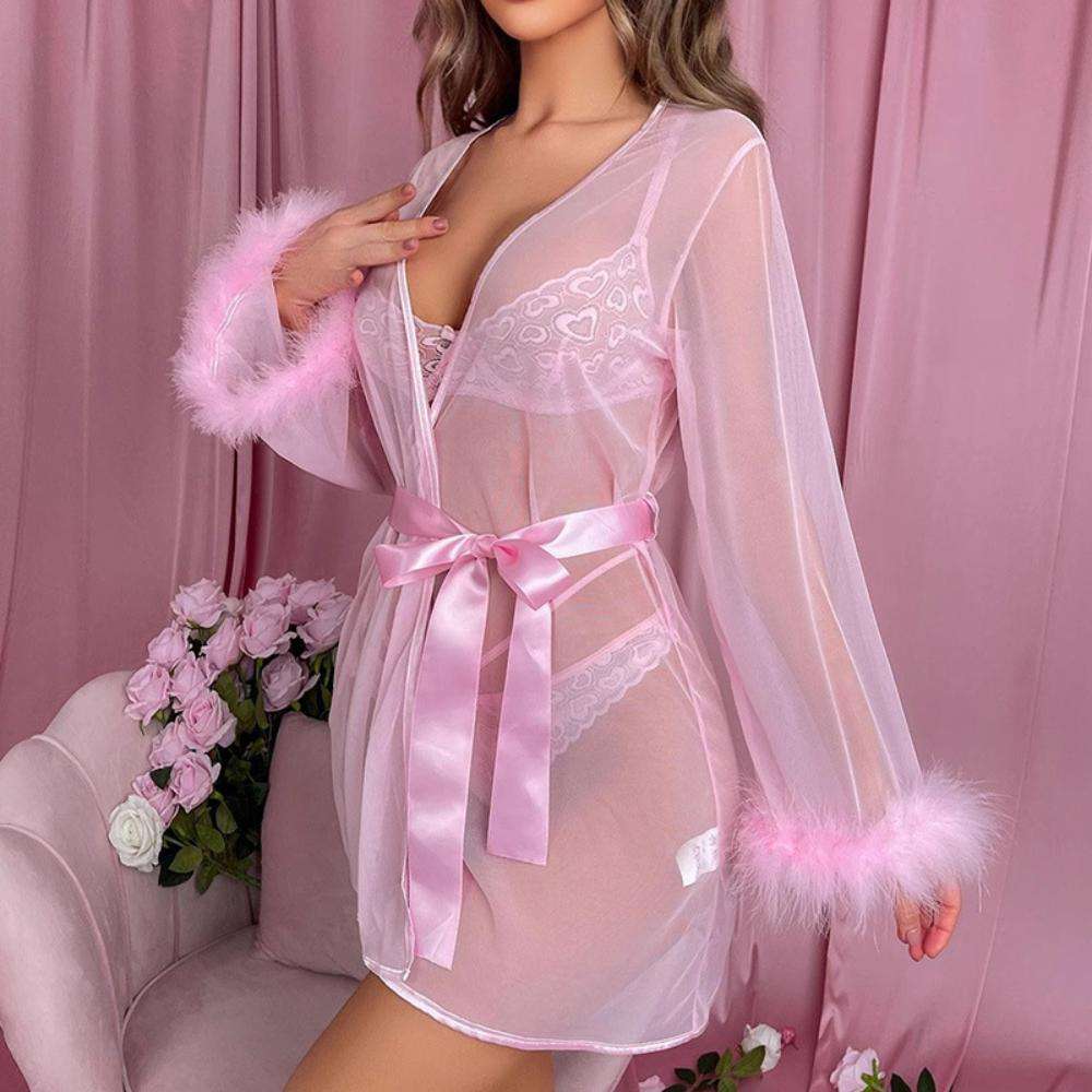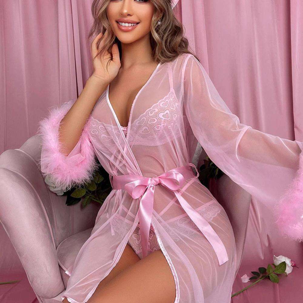 European and American Bestseller Lace Mesh See-through Romantic Lingerie Set, Sexy Lace Three-piece Pajamas