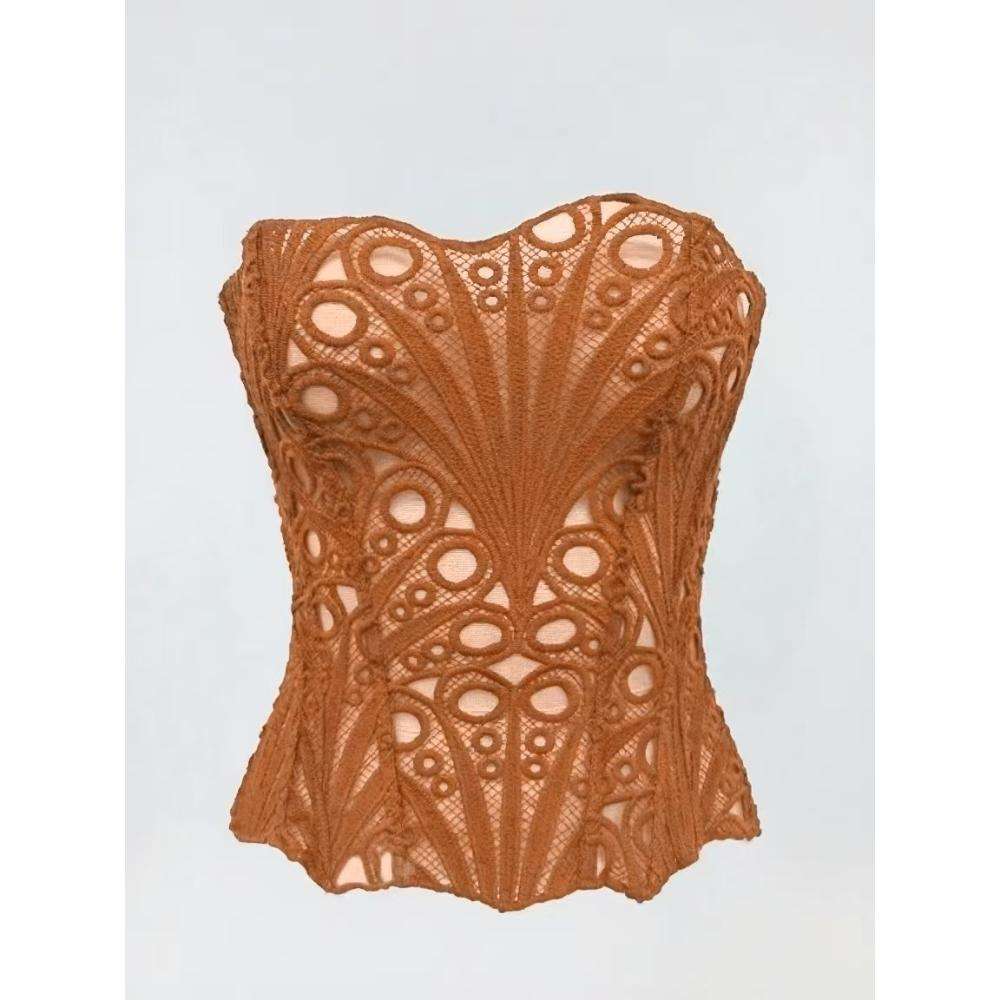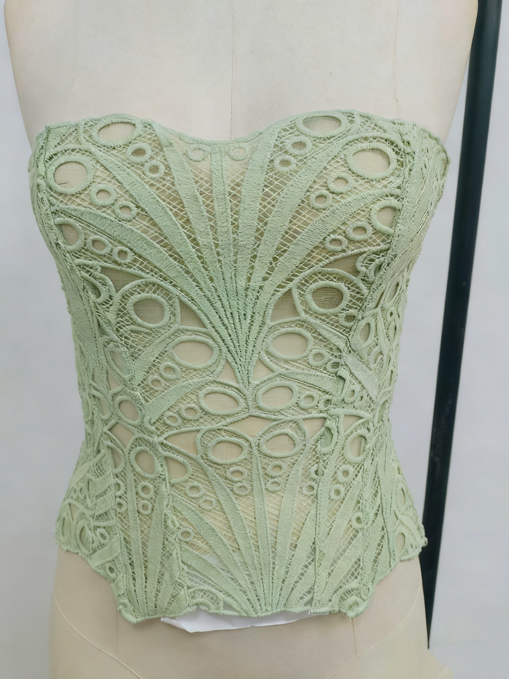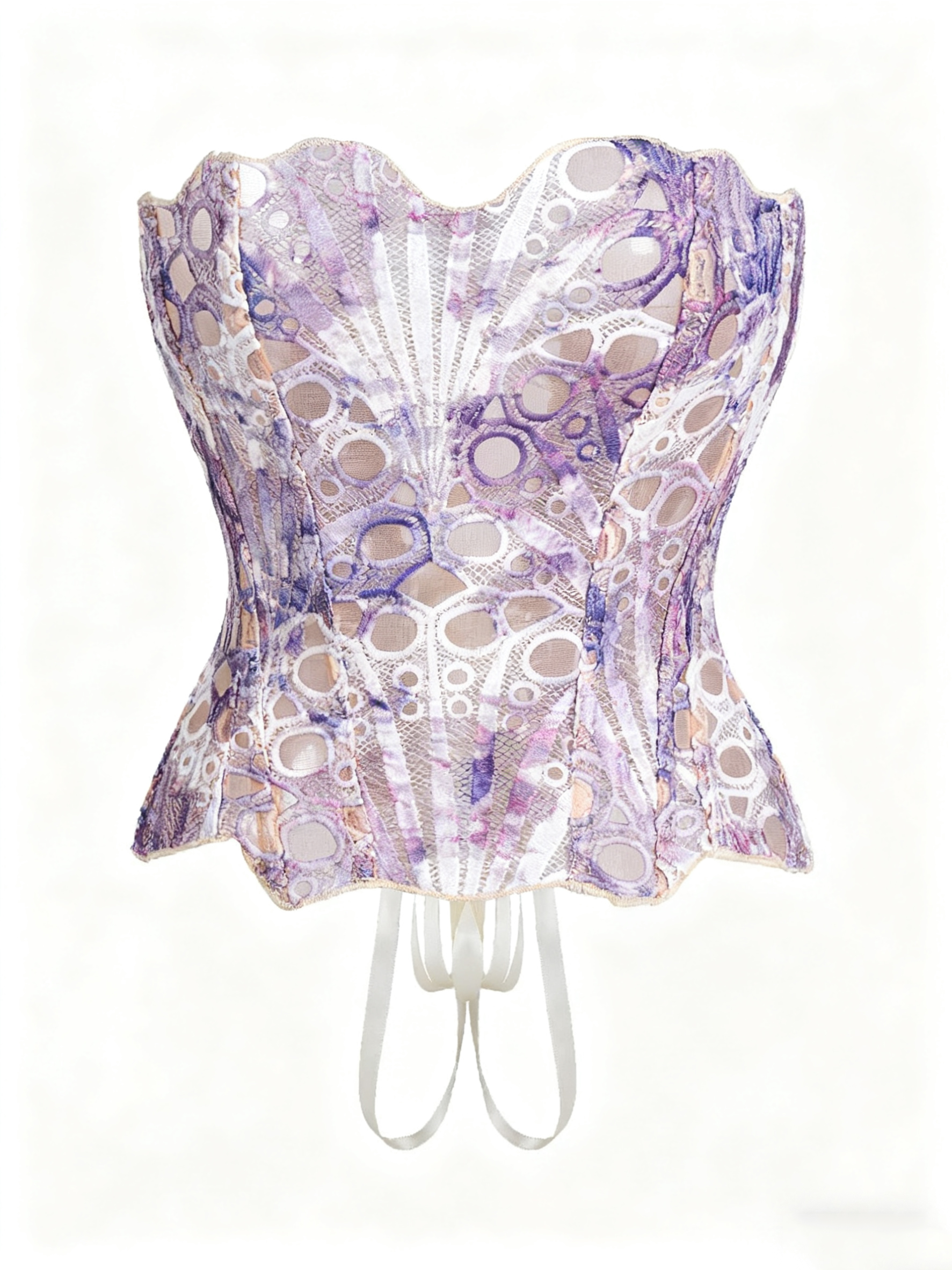 European and American Court Corset with Mesh Breathable and Sexy Cut-out Shaping Top, Irregular Lace Double-layer Corset