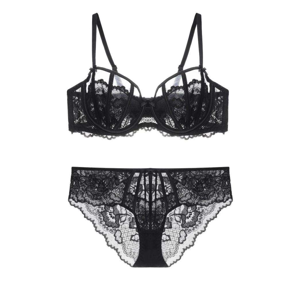 European and American Lace Bra and Underwear Anti-sagging Underwear Set, Feminine Ultra-thin Large-bra and Petite Underwear Set
