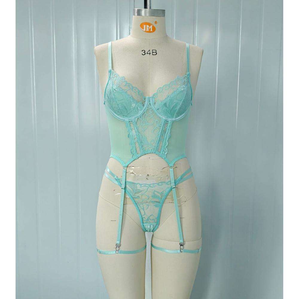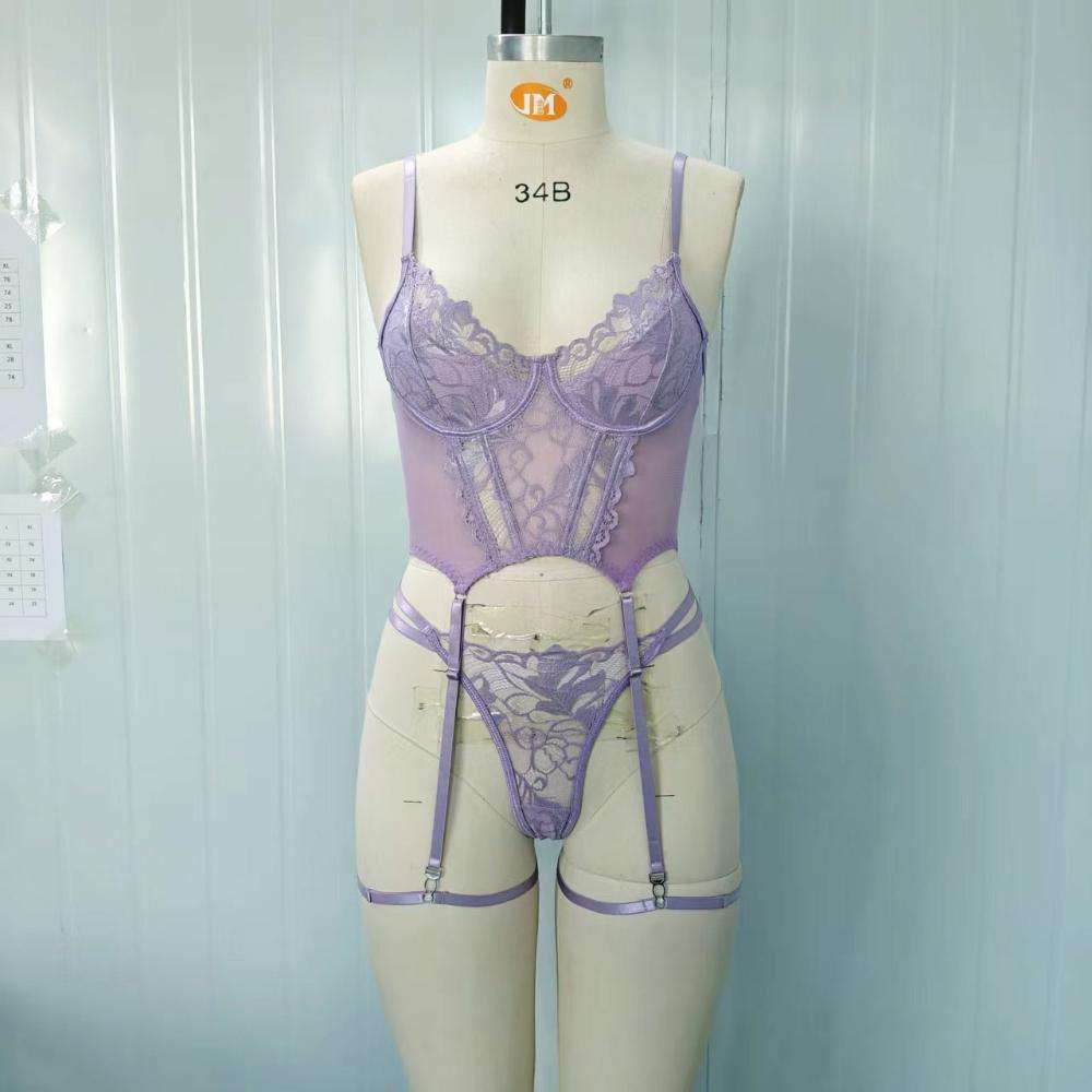 European and American Sexy and Romantic Underwear Set, Mesh Uniform, Embroidered See-through Seductive Thong Set