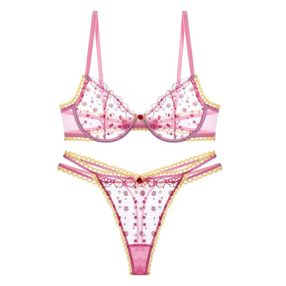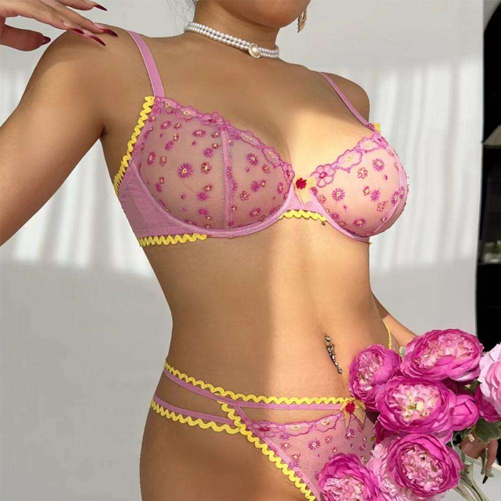 European and American Sexy Lingerie, Small Floral Embroidery Lace, Sponge-free Transparent French Bra Set