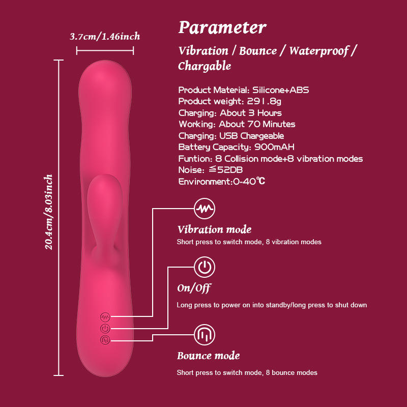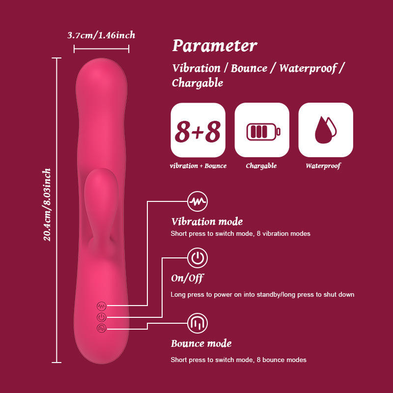 Factory Wholesale Electric Clitoris Masturbator Vibrator With 8 Intense Functions of Vibration,8 Bounce Models for Women