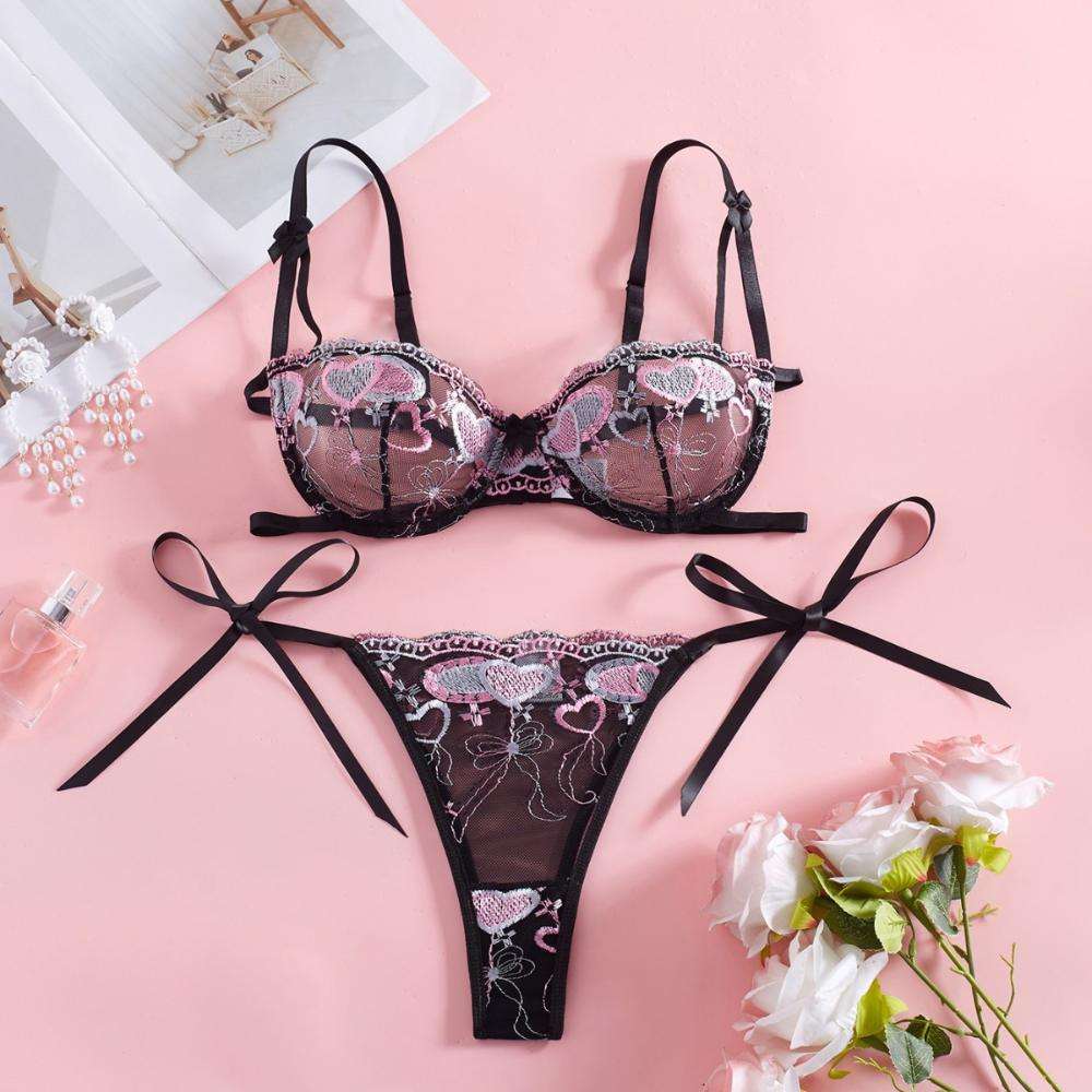 Factory Wholesale of Popular European and American Sexy Tulle See-through Flower Embroidery Tie Bow Adult Lingerie Sets