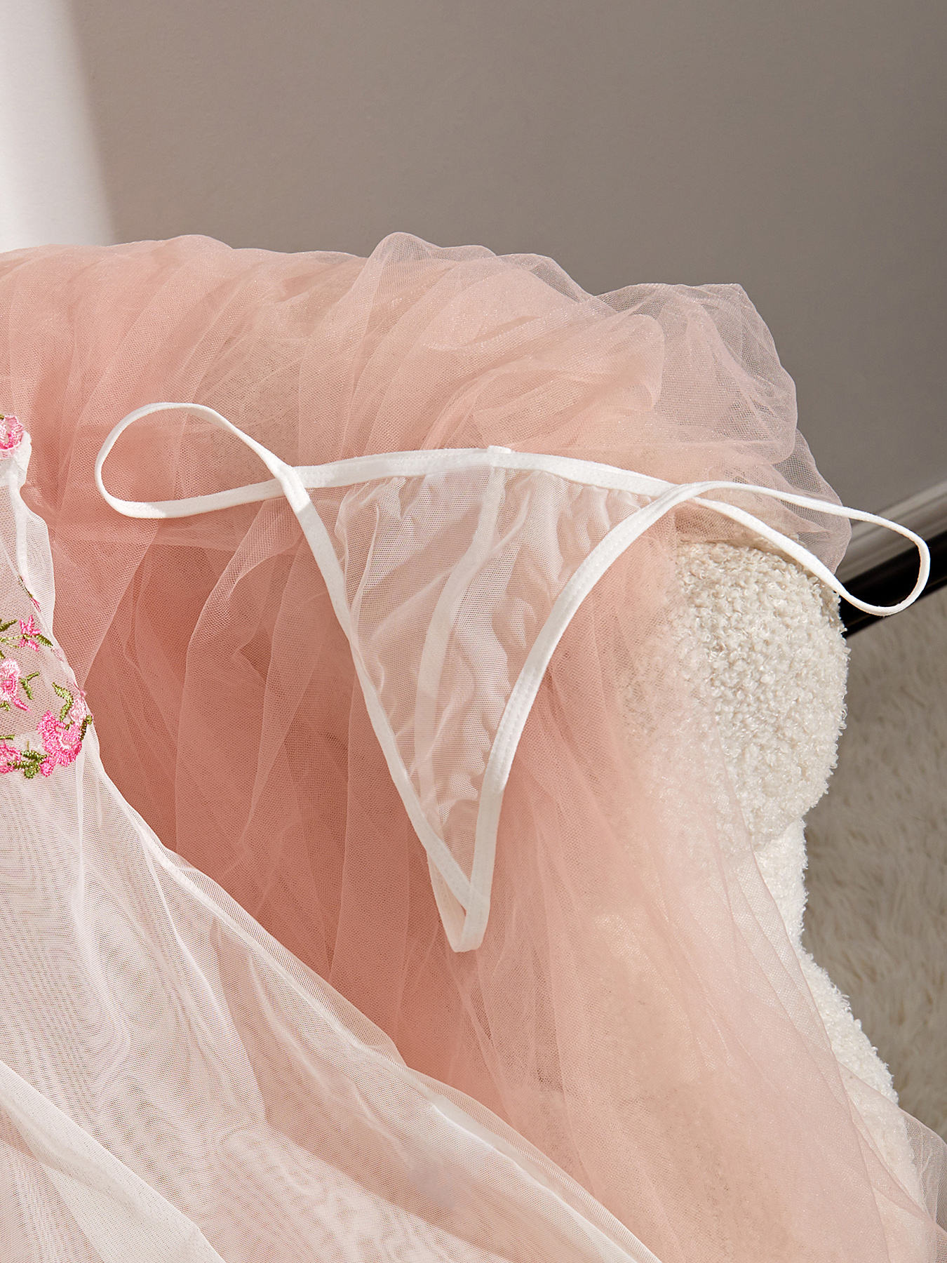 Floral See Through Sexy Slip Dress Mesh Cute Girls Sexy Nightwear Sleep Nightdress Lingerie Dress Set