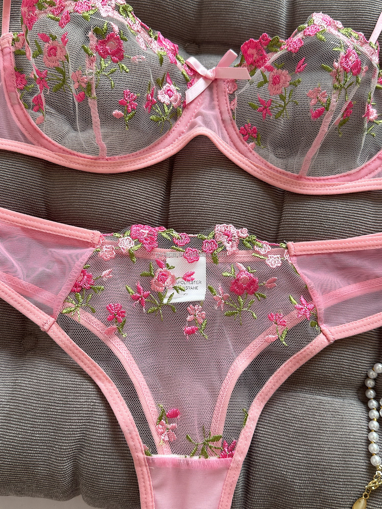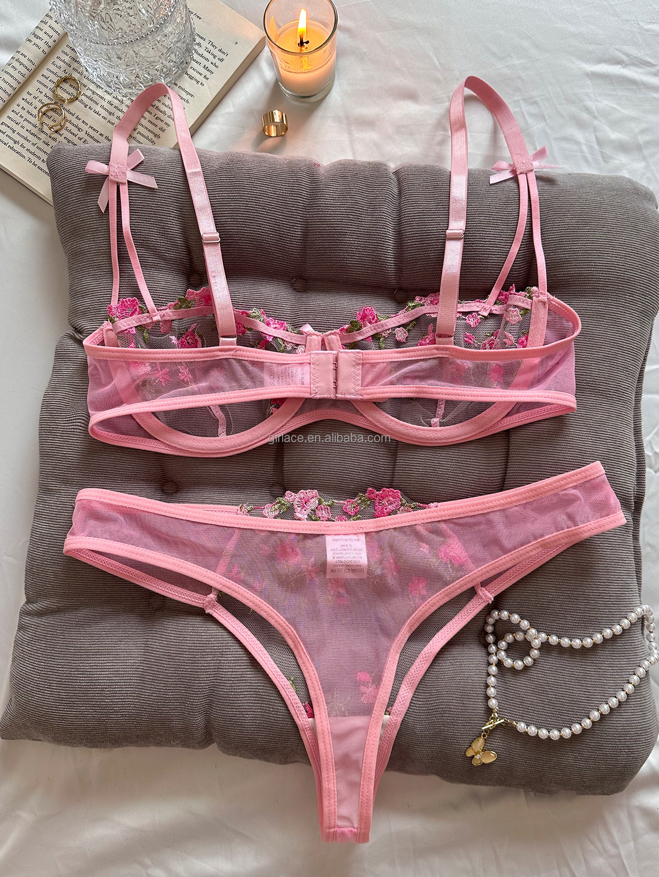 Girls Western Style Embroidery Bow Bra Strappy Sleeping Cute Sexy Underwear Set
