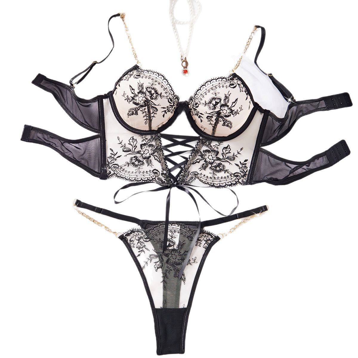High Quality Women Sexy Floral Satin Lace Lingerie Set Sexy Push-up Bralette and Panty Perspective See-Through Underwear Set