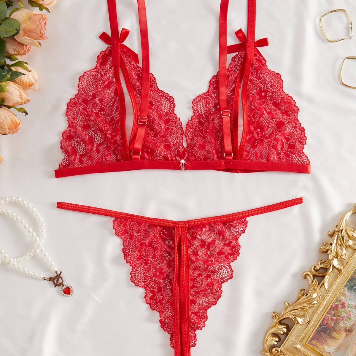 成为第一个“Hot Sale New Romantic Women Solid Bra & Brief Set Lace Halter Cross Women’s Underwear Sexy Thin Bra and Lingerie Sets” 的评价者