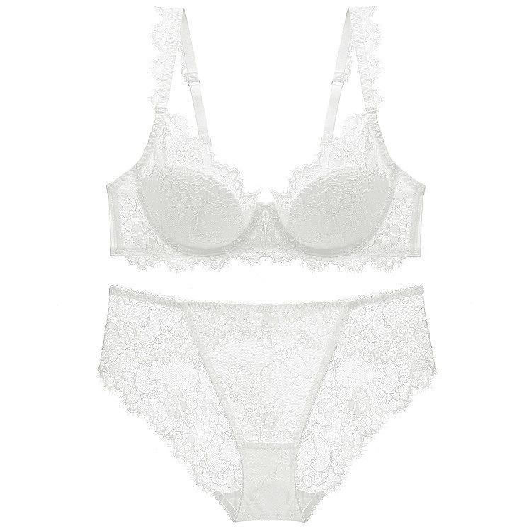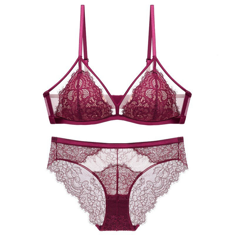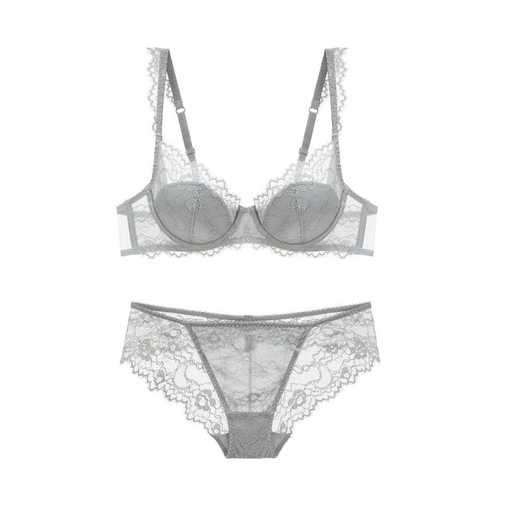Hot Sale Ultra-Thin Sexy Madam French Bra Lingerie Set for Women Hollow See-Through Mesh Bra with Lace Decoration for Summer