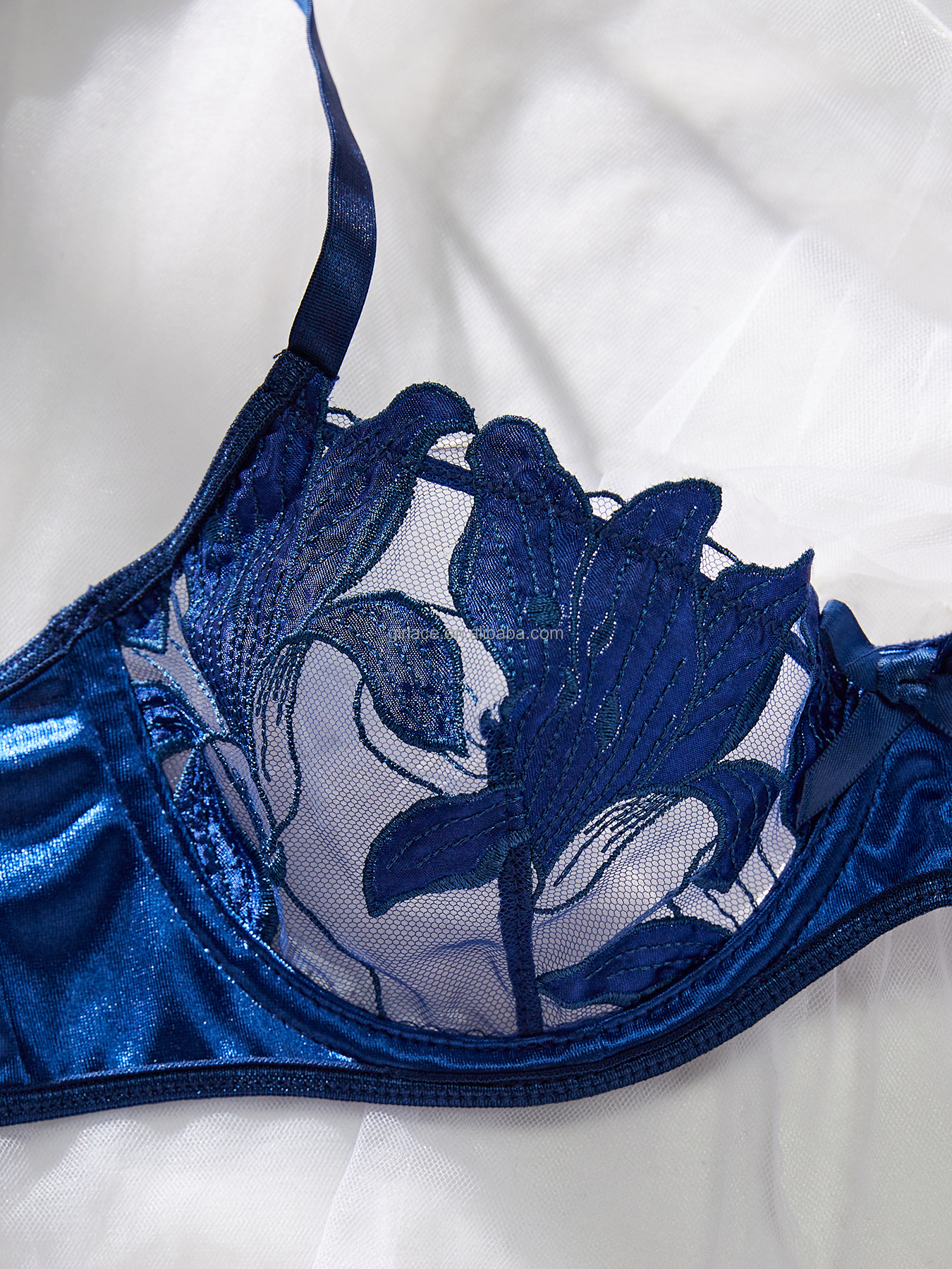 Hot Sell Soft See Through Lace Lingerie 3 Pieces Tube Teddy Very Sexy Blue Lingerie Set