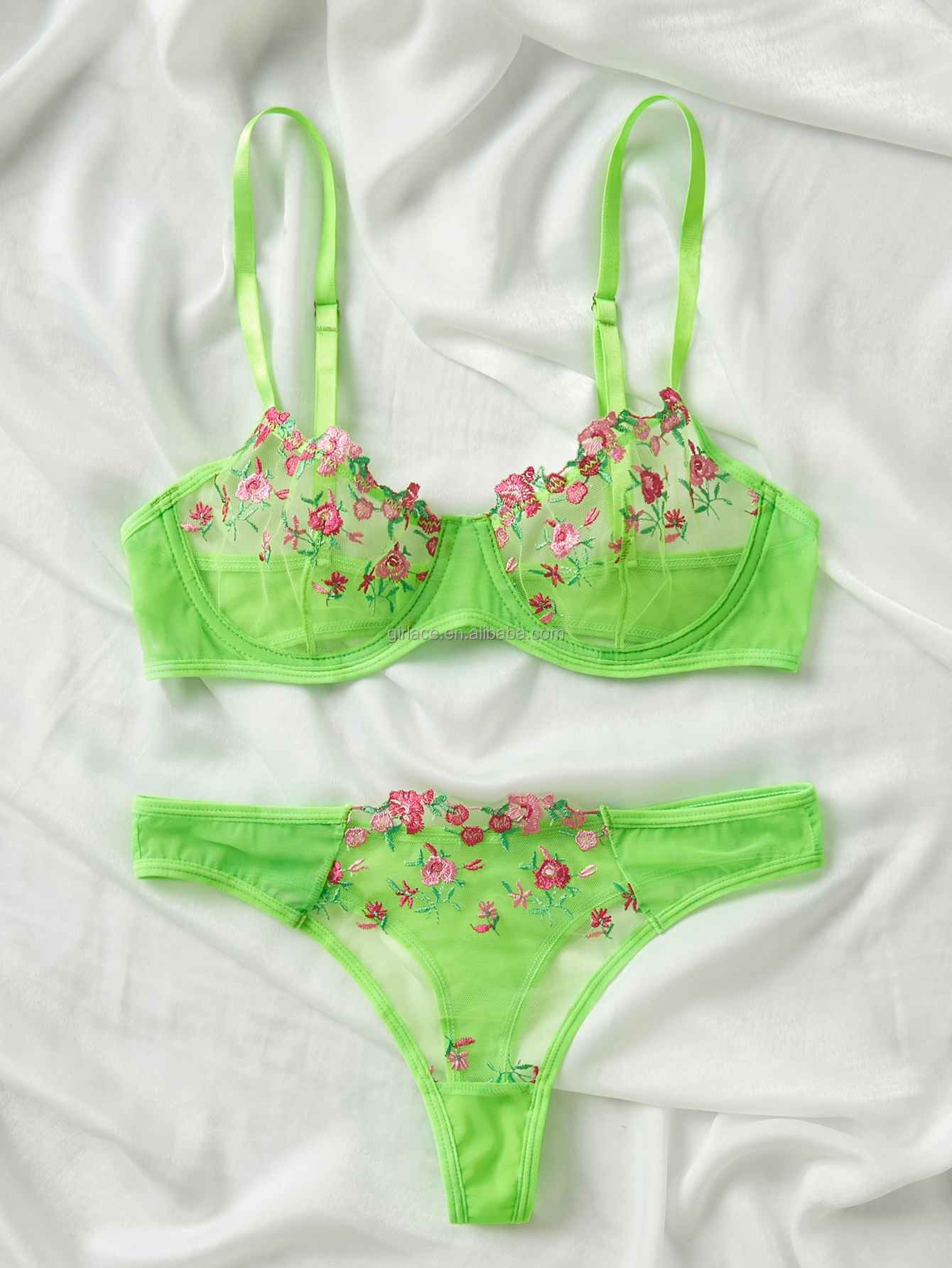 Hot Sell Women Sexy Embroidery Underwire Push up Bra Underwear Floral 2 Piece Lace Mesh Lingerie Sets Many Colors