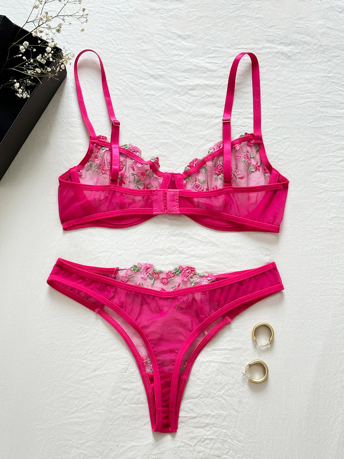 成为第一个“Hot Sell Women Sexy Embroidery Underwire Push up Bra Underwear Floral 2 Piece Lace Mesh Lingerie Sets Many Colors” 的评价者