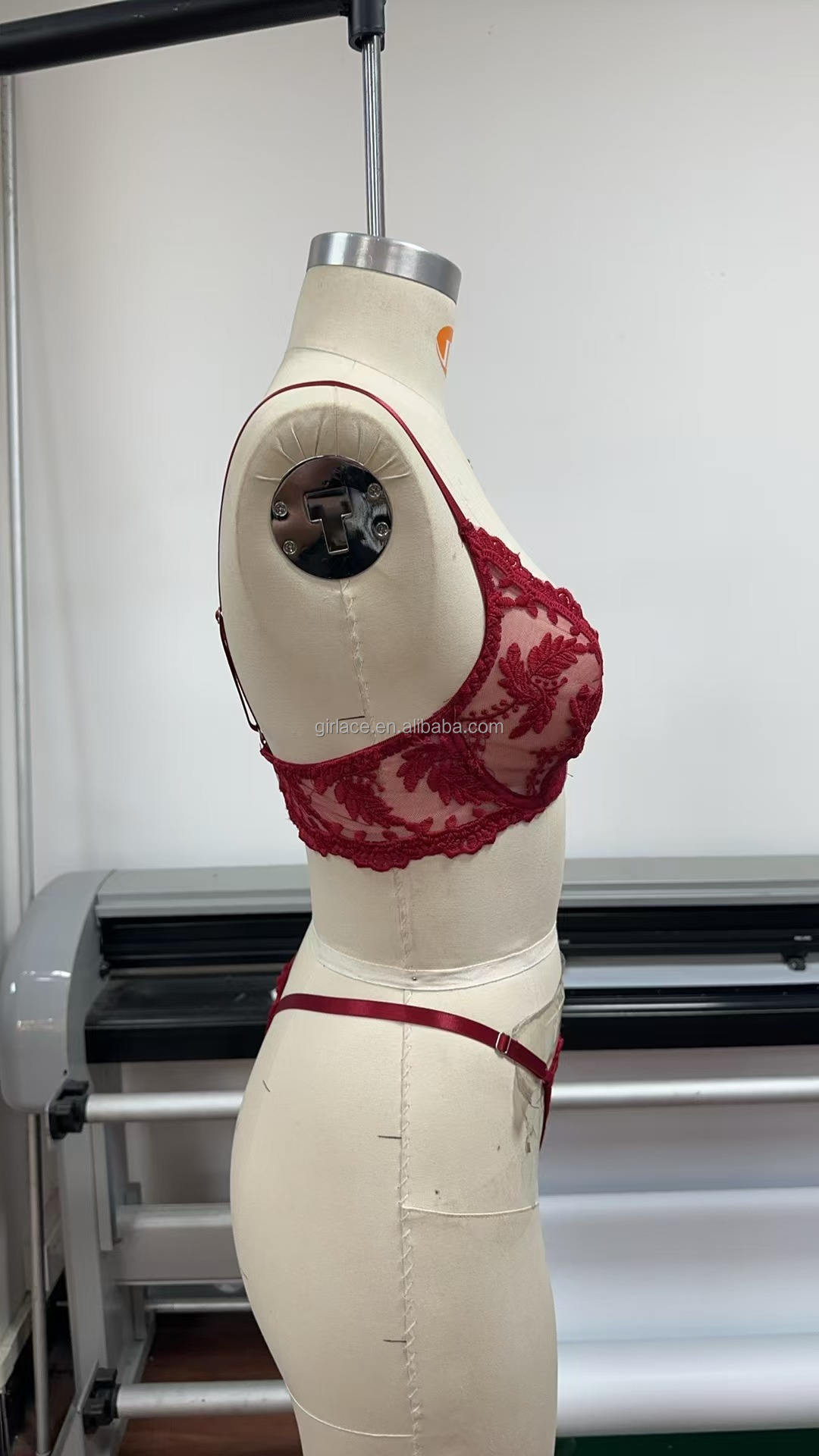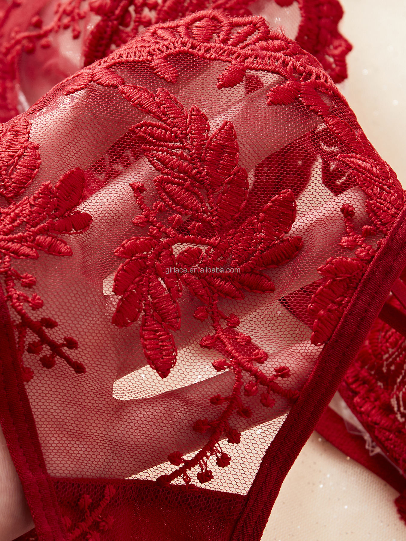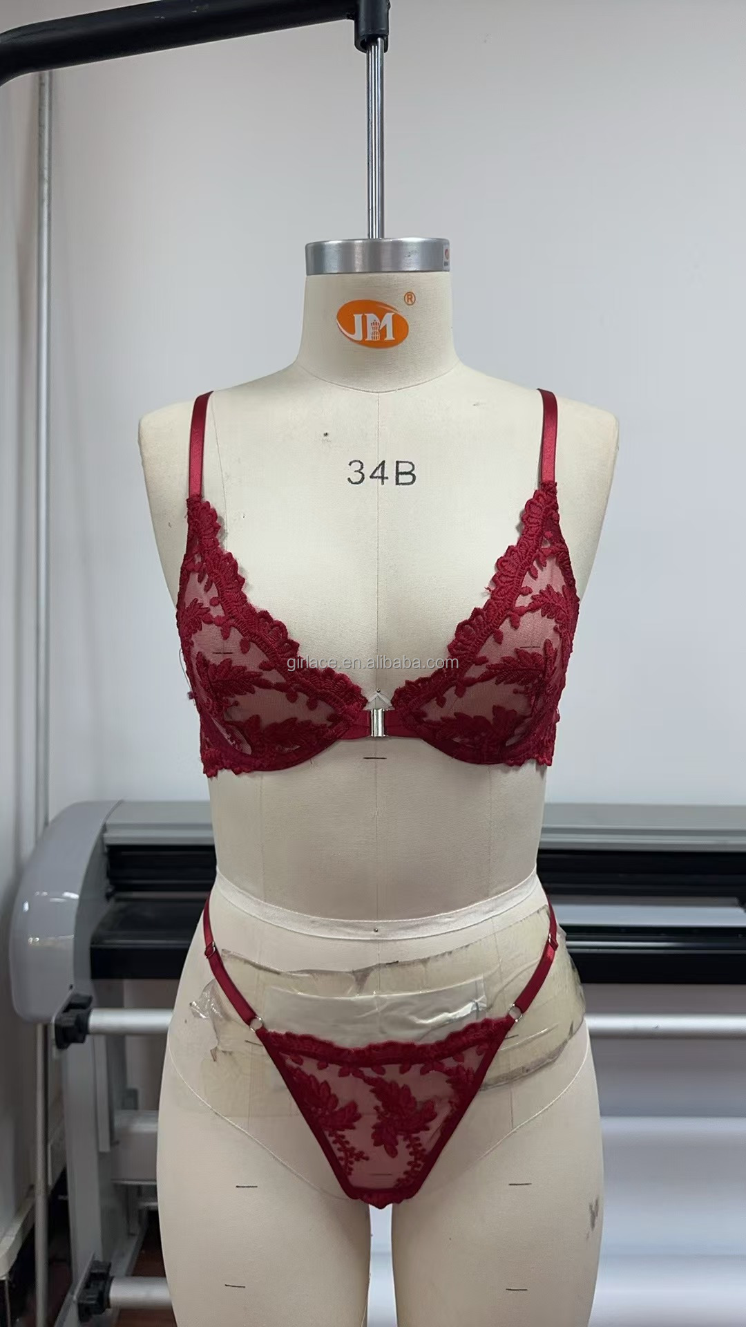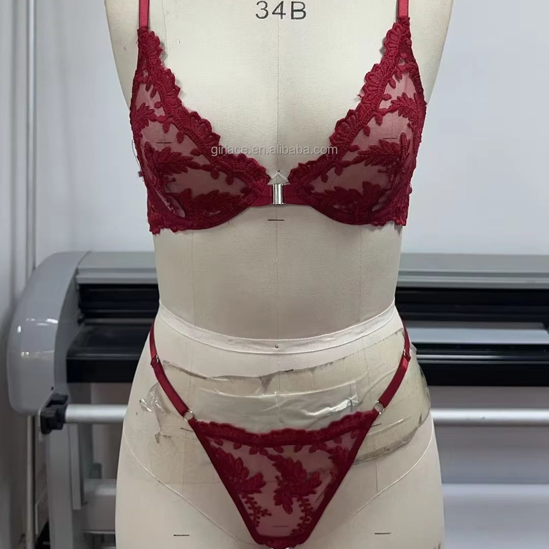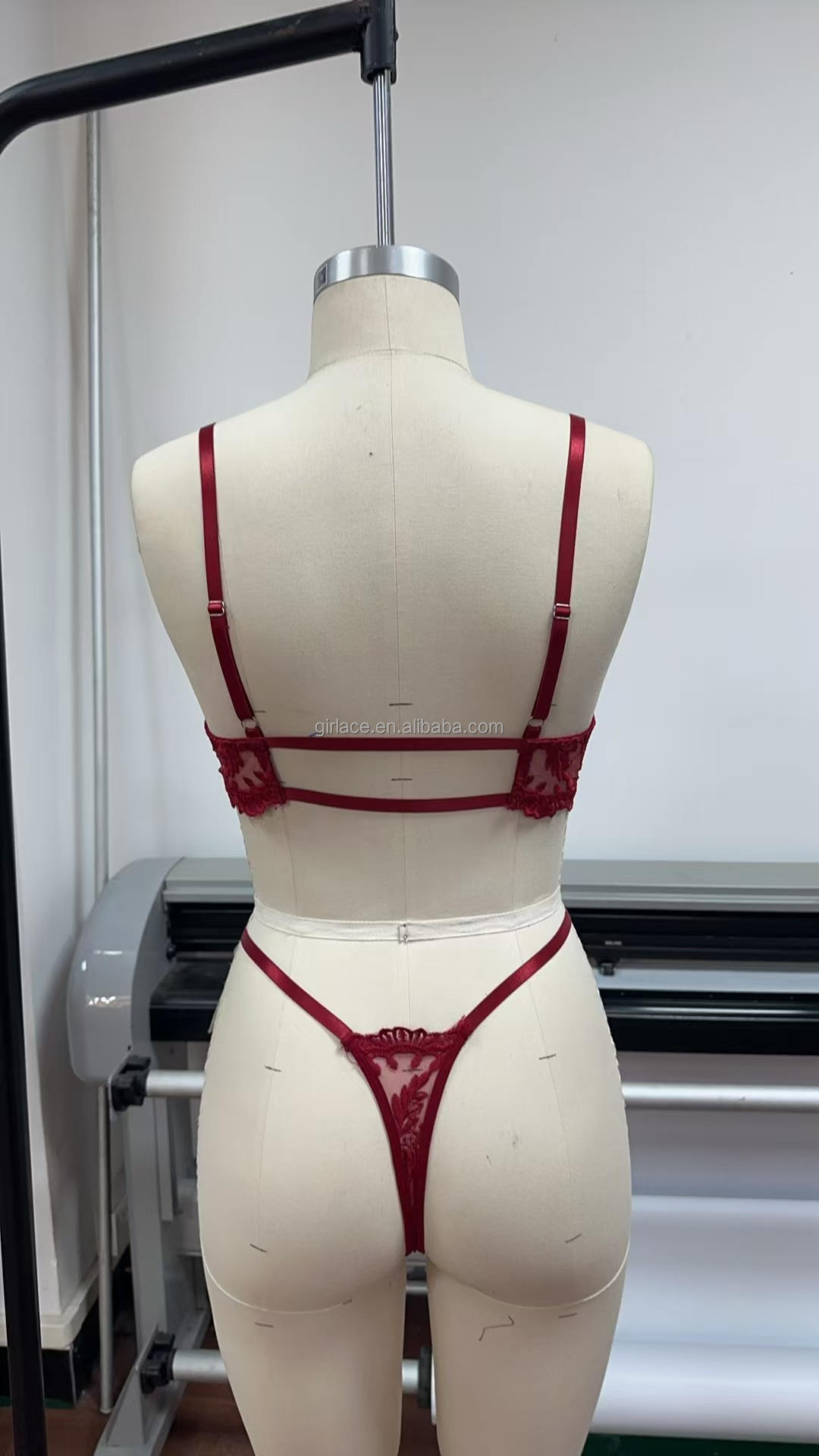 Hot-Selling Floral Embroidery Sexy Lingerie Thong Set Soft Embroidery Sheer Mesh Bra & Briefs Pure Desire Lingerie