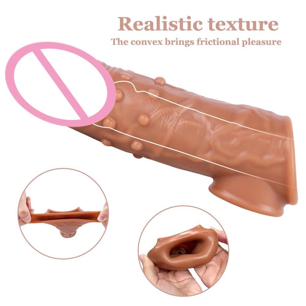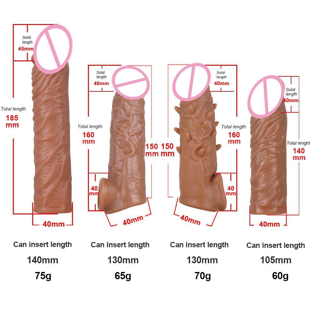 Hot Selling Realistic Masturbation Dildo Sleeve Reusable Soft Silicone Extended Condoms for Men Adult Sex Toys