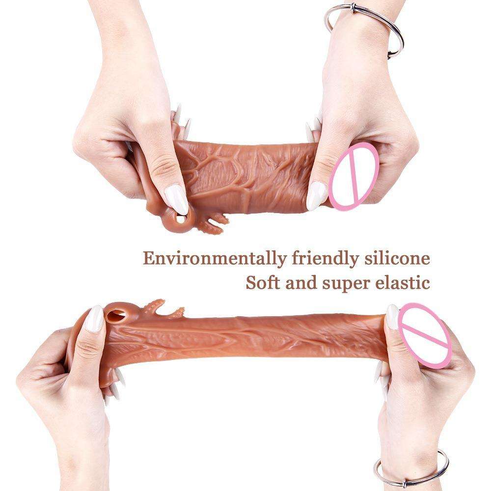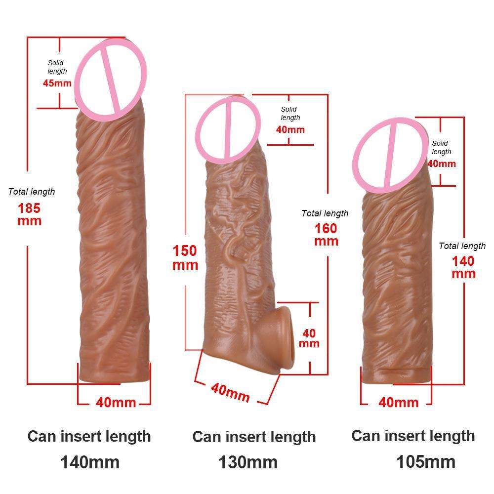 Hot Selling Realistic Masturbation Dildo Sleeve Reusable Soft Silicone Extended Condoms for Men Adult Sex Toys