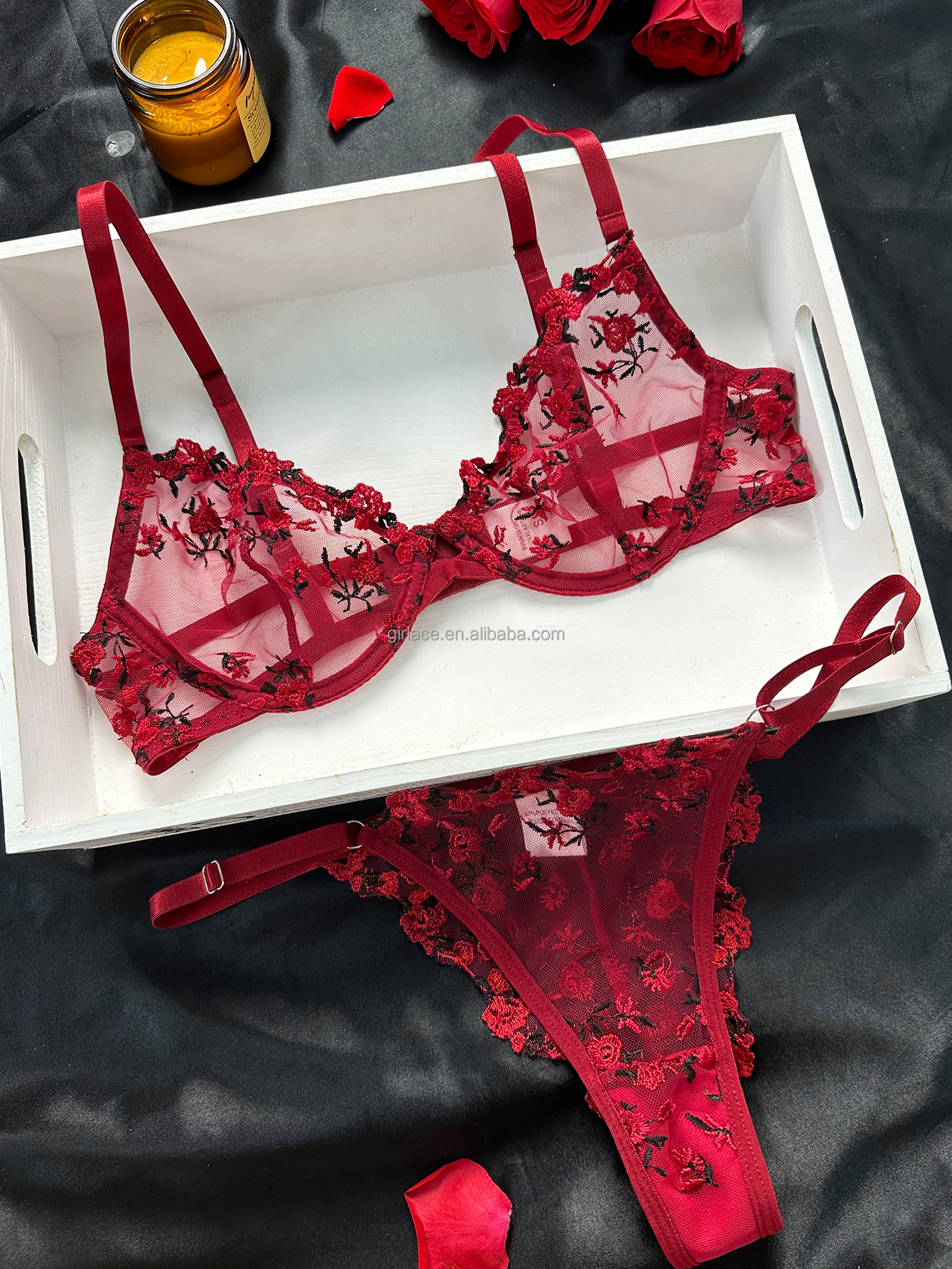 Lady Open Bra G-string Ser Womens Sexy Underwear Night Party See Through Lingeries Set for Wholesale
